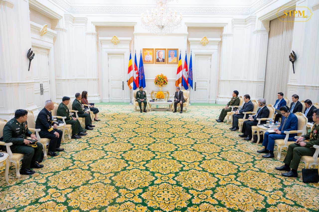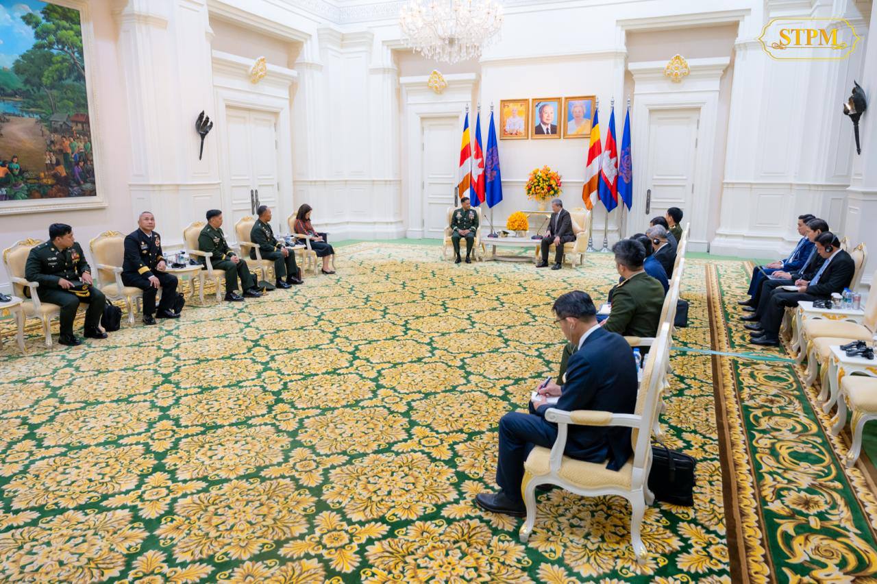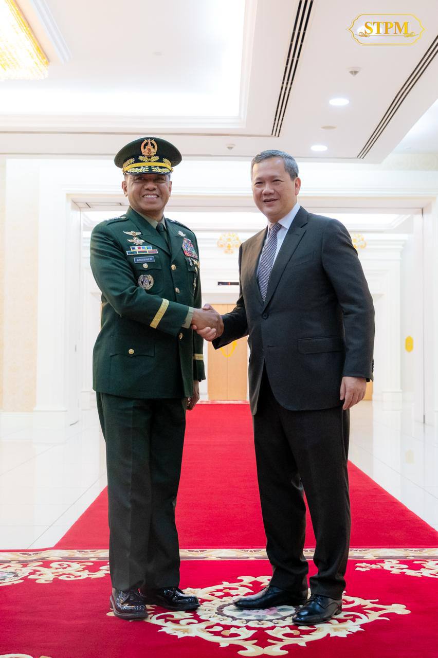 សម្តេចមហាបវរធិបតី ហ៊ុន ម៉ាណែត នាយករដ្ឋមន្ត្រីនៃព្រះរាជាណាចក្រកម្ពុជា ជួបជាមួយ ឯកឧត្តម នាយឧត្តមសេនីយ៍ Romeo S Brawner Jr អគ្គមេបញ្ជាការកងទ័ពហ្វីលីពីន ក្នុងជំនួបសម្តែងការគួរសម និងពិភាក្សាការងារ នៅវិមានសន្តិភាព។