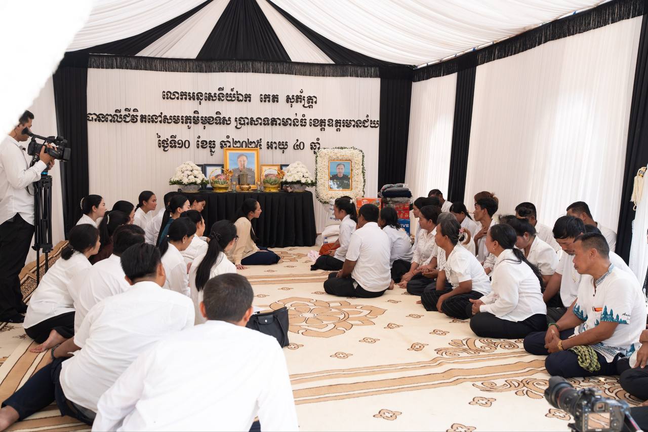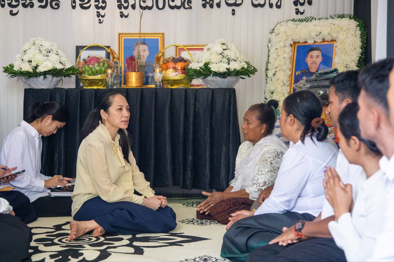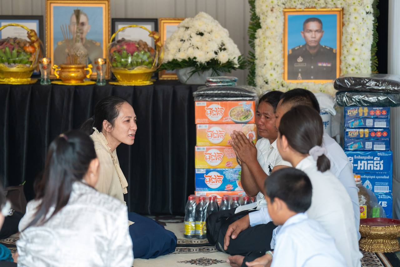ស្ថិតក្នុងបរិយាកាសដ៏សោកសៅនេះដែរលោកជំទាវបណ្ឌិត បានពាំនាំប្រសាសន៍ចូលរួមរំលែកមរណទុក្ខដ៏ក្រៀមក្រំបំផុត រួមជាមួយប្រសាសន៍សាកសួរសុខទុក្ខពី សម្តេចអគ្គមហាសេនាបតីតេជោ ហ៊ុន សែន និងសម្តេចកិត្តិព្រឹទ្ធបណ្ឌិត ព្រមទាំង សម្តេចធិបតីនាយករដ្ឋមន្ត្រី ជូនដល់ក្រុមគ្រួសារនៃសព។ ជាមួយគ្នានេះលោកជំទាវបណ្ឌិត ក៏បាននាំយកមកជាមួយនូវអំណោយដ៏ថ្លៃថ្លារបស់សម្តេចធិបតី និងលោកជំទាវបណ្ឌិត មានដូចជាថវិកា សម្ភារៈប្រើប្រាស់ ស្បៀងអាហារ និងសម្ភារៈចាំបាច់ផ្សេងៗ ជូនដល់ក្រុមគ្រួសារនៃសព ដើម្បីជួយទ្រទ្រង់ជីវិតរស់នៅប្រចាំថ្ងៃ។