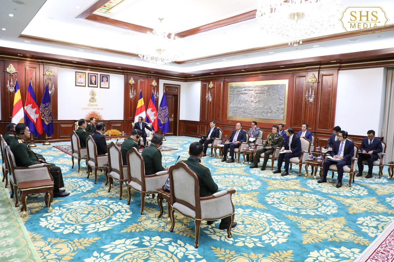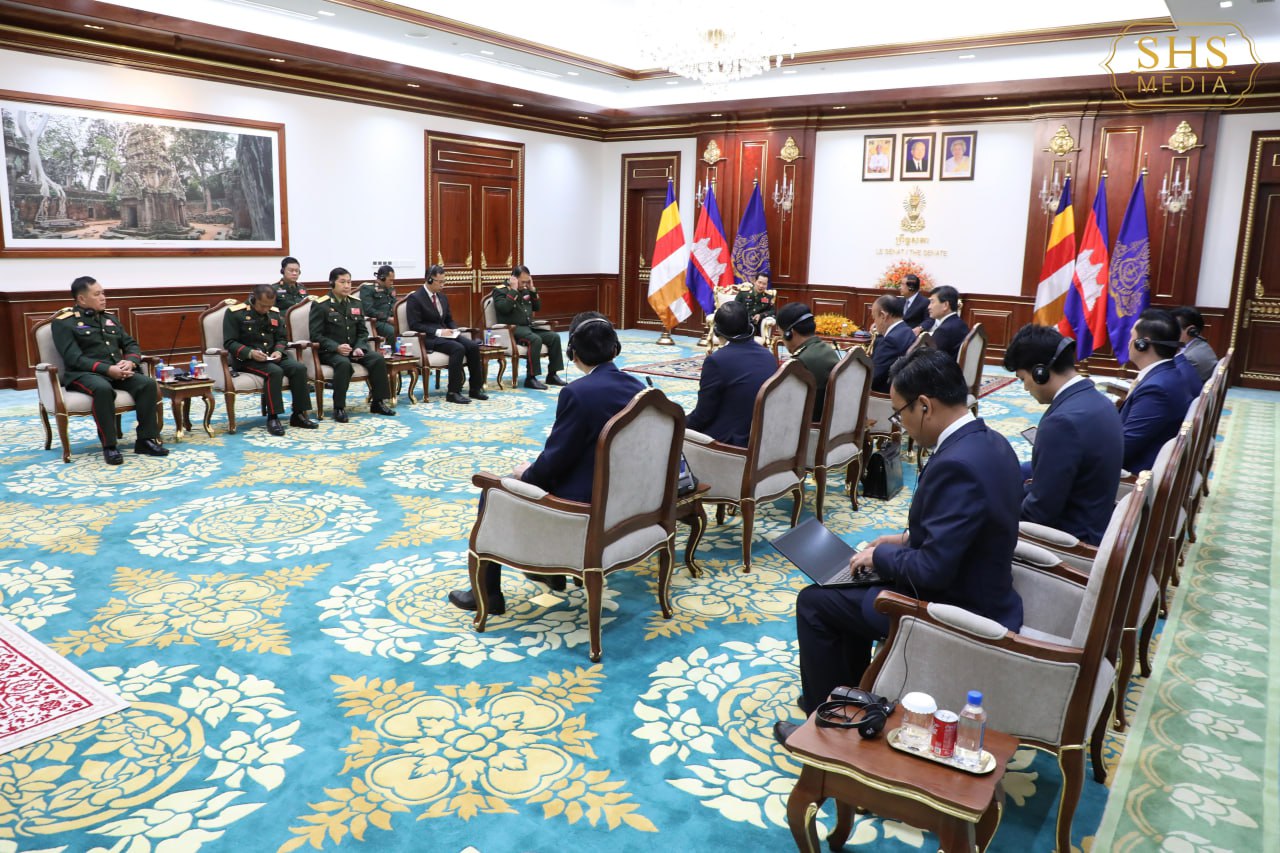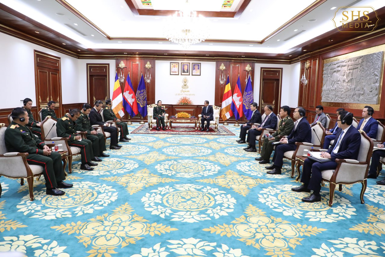 សម្តេចអគ្គមហាសេនាបតីតេជោ ហ៊ុន សែន ប្រធានព្រឹទ្ធសភា នៃព្រះរាជាណាចក្រកម្ពុជា អនុញ្ញាតជូន ឯកឧត្តមឧត្តមសេនីយ៍ឯក សាយចៃ គុមម៉ាស៊ីត (Saichay Kommasith) អនុរដ្ឋមន្ត្រីក្រសួងការពារប្រទេស និងជាប្រធានអគ្គសេនាធិការកងទ័ពប្រជាជនឡាវ ចូលជួបសម្តែងការគួរសម និងពិភាក្សាការងារ នៅវិមានសាមគ្គីភាព រាជធានីភ្នំពេញ នាព្រឹកថ្ងៃទី១៧ ខែកុម្ភៈ ឆ្នាំ២០២៦។