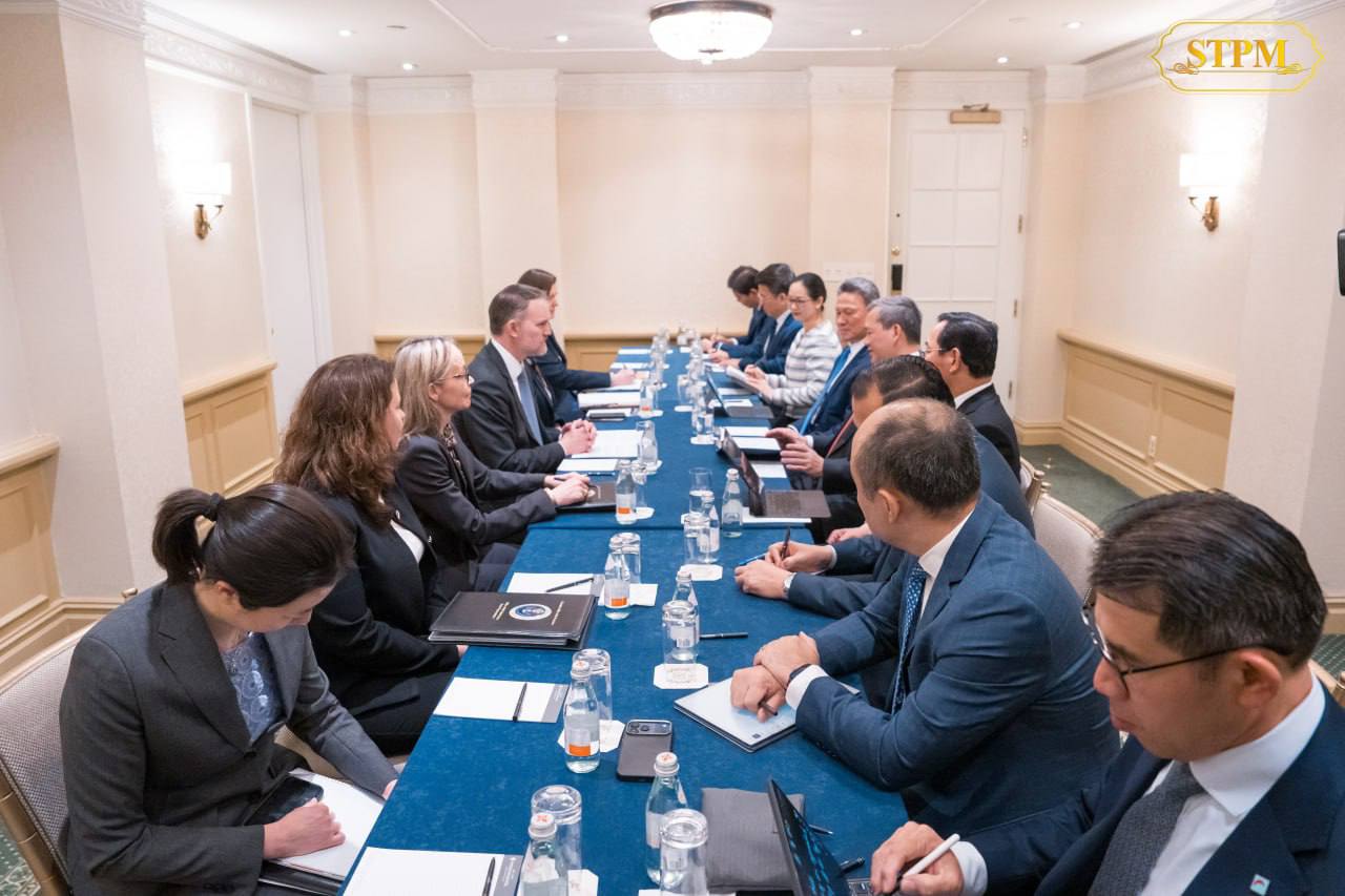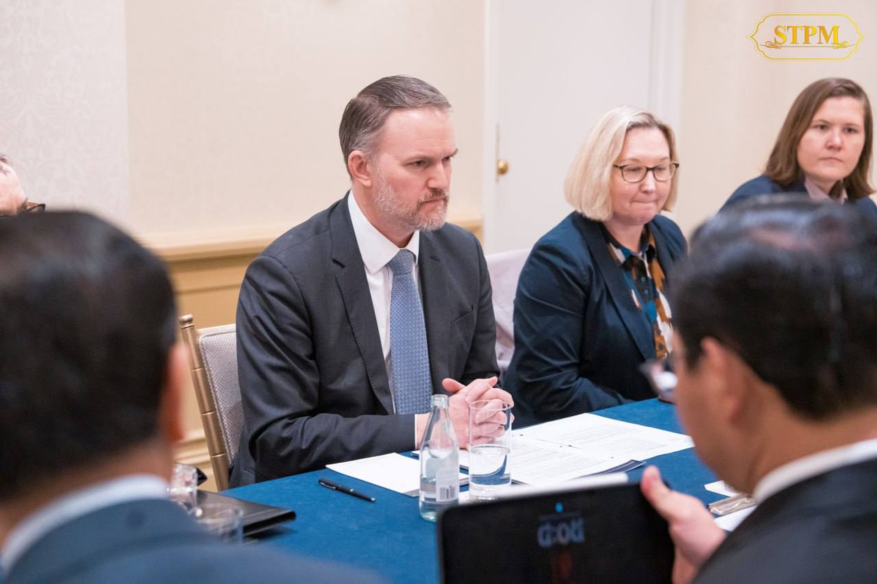 សម្តេចមហាបវរធិបតី ហ៊ុន ម៉ាណែត នាយករដ្ឋមន្ត្រីនៃព្រះរាជាណាចក្រកម្ពុជា ជួបជាមួយ ឯកឧត្ដមឯកអគ្គរដ្ឋទូត Jamieson Greer តំណាងពាណិជ្ជកម្មសហរដ្ឋអាមេរិក ក្នុងជំនួបសម្ដែងការគួរសម និងពិភាក្សាការងារ។