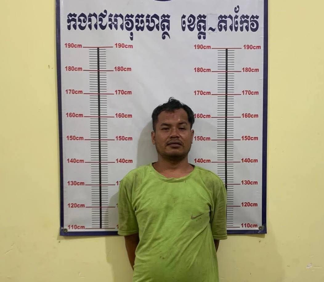 ខេត្តតាកែវ : នៅវេលាម៉ោង៣:៣៥នាទីទៀបភ្លឺ ថ្ងៃទី១៩ ខែកុម្ភៈ ឆ្នាំ២០២៦(ត្រង់ចំណុចក្លោងទ្វារវត្តអង្គជុំ ភូមិអង្គគគី ឃុំពពេល ស្រុកត្រាំកក់ ខេត្តតាកែវ) កម្លាំងមន្ទីរស្រាវជ្រាវ និងបង្រ្កាបបទល្មើស សហការជាមួយកម្លាំងមូលដ្ឋានកងរាជអាវុធហត្ថស្រុកត្រាំកក់ ដឹកនាំដោយលោកវរសេនីយ៍ឯក កែន វណ្ណៈ មេបញ្ជាការរង ទទួលការងារនគរបាលយុត្តិធម៌ ឃាត់ខ្លួនជនសង្ស័យ ឈ្មោះប៉ាង សុបិន ភេទប្រុស អាយុ៣៤ឆ្នាំ មុខរបរជាងសំណង់ រស់នៅភូមិត្រាវអែម ឃុំពពេល ស្រុកត្រាំកក់ ខេត្តតាកែវ ដែលជាជនដៃដល់ ក្នុងករណីឃាតកម្ម ដោយយកពូថៅកាប់ជនរងគ្រោះស្លាប់ ចំនួនពីរនាក់ ប្រុសម្នាក់ ស្រីម្នាក់ កាលពីវេលាម៉ោង២០:០៥នាទី ថ្ងៃទី១៧ ខែកុម្ភៈ ឆ្នាំ២០២៦ នៅភូមិត្រាវអែម ឃុំពពេល ស្រុកត្រាំកក់ ខេត្តតាកែវ។
