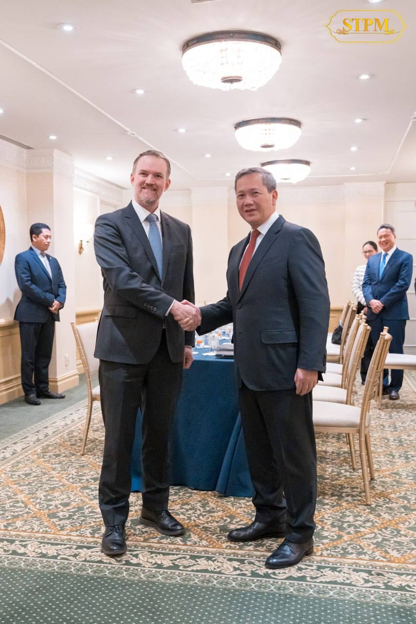 នារសៀលថ្ងៃទី១៨ ខែកុម្ភៈ ឆ្នាំ២០២៦ សម្ដេចមហាបវរធិបតី ហ៊ុន ម៉ាណែត នាយករដ្ឋមន្ត្រីកម្ពុជា បានជួបពិភាក្សាការងារជាមួយ លោកឯកអគ្គរដ្ឋទូត Jamieson Greer តំណាងពាណិជ្ជកម្មសហរដ្ឋអាម៉េរិក ក្នុងឱកាសនៃការដឹកនាំគណៈប្រតិភូរាជរដ្ឋាភិបាលកម្ពុជាចូលរួមកិច្ចប្រជុំលើកដំបូងនៃក្រុមប្រឹក្សាសន្តិភាព (Board of Peace) នៅរដ្ឋធានីវ៉ាស៊ីនតោន សហរដ្ឋអាម៉េរិក។