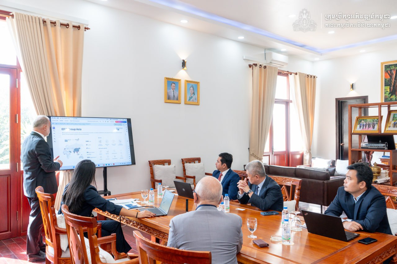 សូមបញ្ជាក់ជូនថា៖ ក្រុមហ៊ុន IDECGROUP ASIA បង្កើតឡើងដោយការរួមសហការរវាងក្រុមហ៊ុន GROUPE IDEC និងក្រុមហ៊ុន ARCHETYPE GROUP ដែលមានកម្មវត្ថុអាជីវកម្មក្នុងការរចនាប្លង់សាងសង់ និងផ្តល់សេវាសាងសង់, ការផ្តល់ដំណោះស្រាយថាមពល, ឧស្សាហកម្មបៃតង, ភស្តុភារកម្ម។ល។ គោលបំណងនៃការជួបពិភាក្សានាពេលនេះ គឺដើម្បីស្វែងរកកាលានុវត្តភាពវិនិយោគនៅកម្ពុជា ក្នុងវិស័យដែលមានសក្តានុពលមួយចំនួន៕