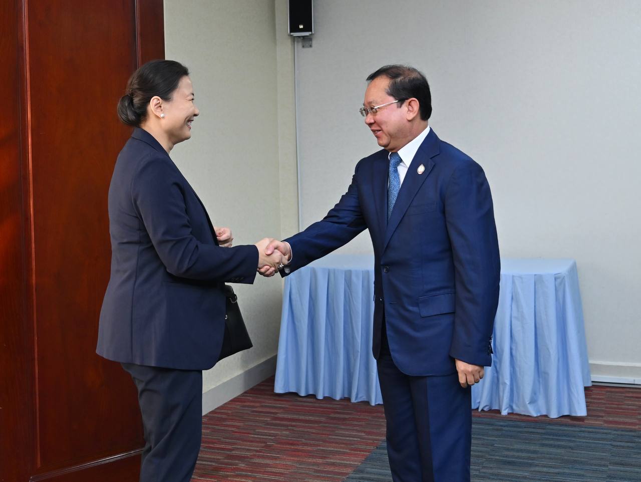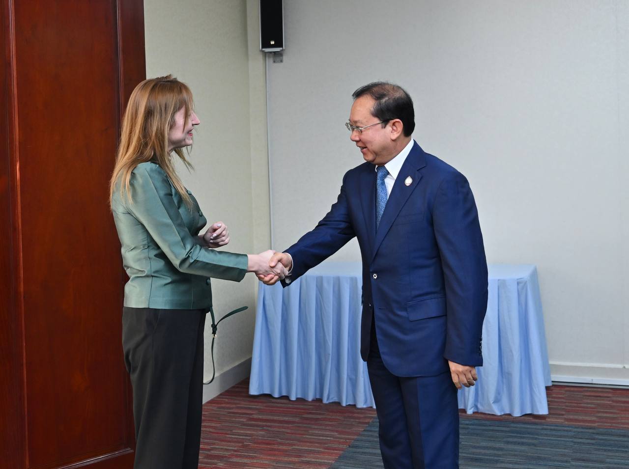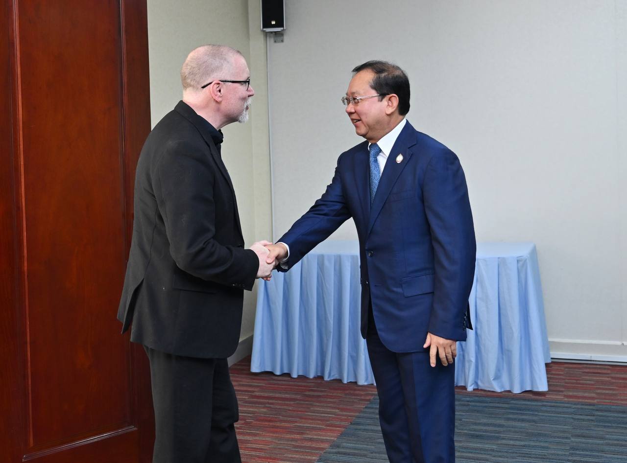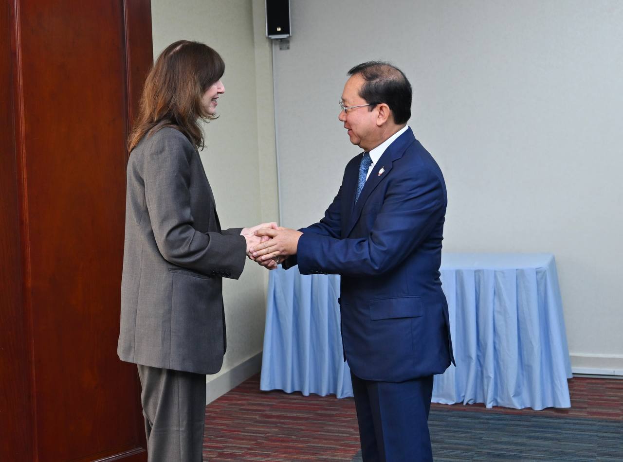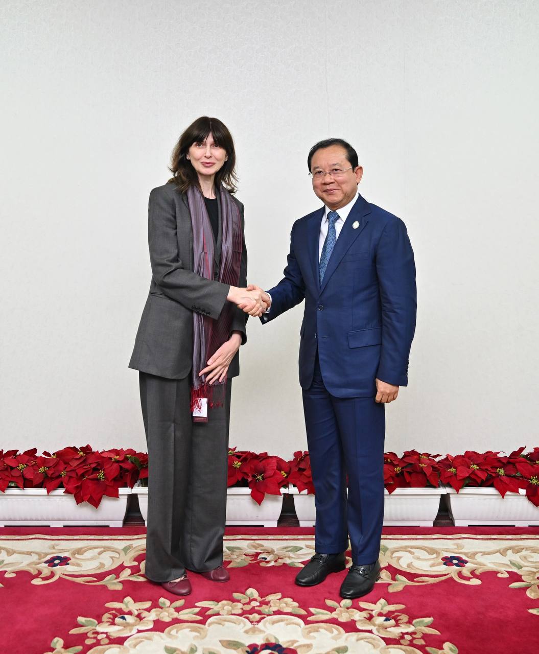 (ភ្នំពេញ)៖ លោកសាស្ត្រាចារ្យ ឈាង រ៉ា រដ្ឋមន្ត្រីក្រសួងសុខាភិបាល នៅថ្ងៃទី១៩ ខែកុម្ភៈ ឆ្នាំ២០២៦ បានទទួលស្វាគមន៍ និងជួបពិភាក្សាការងារជាមួយ លោកស្រី Vladanka Andreeva ដែលទើបត្រូវបានតែងតាំងជាអ្នកសម្របសម្រួលអង្គការសហប្រជាជាតិ (United Nations Resident Coordinator) ប្រចាំព្រះរាជាណាចក្រកម្ពុជា ដែលប្រព្រឹត្តទៅនៅទីស្តីការក្រសួងសុខាភិបាល។