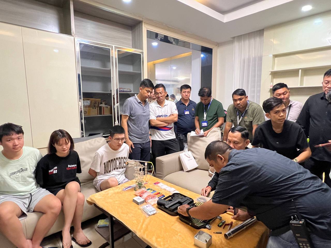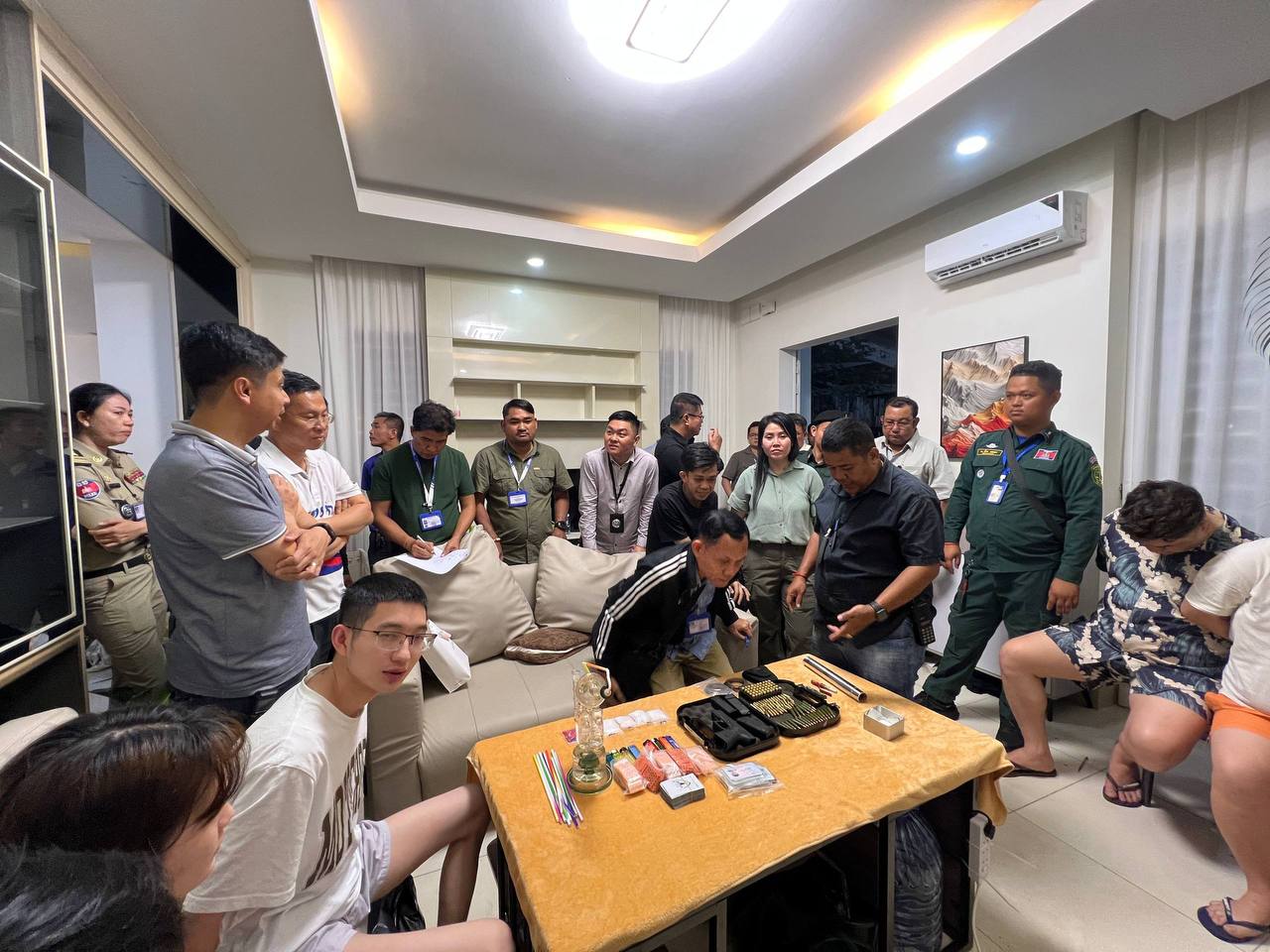 អាជ្ញាធររាជធានីភ្នំពេញ ចុះរដ្ឋបាលទីតាំងស្នាក់នៅជនបរទេស នៅសង្កាត់និរោធ ខណ្ឌច្បារអំពៅ ឃាត់ខ្លួនជនជាតិចិន១៣នាក់ ដកហូតគ្រឿងញៀន និងអាវុធខ្លី