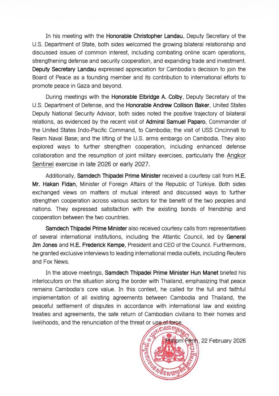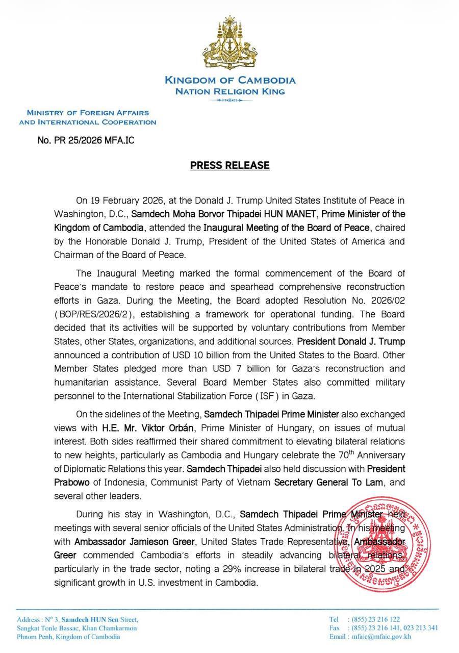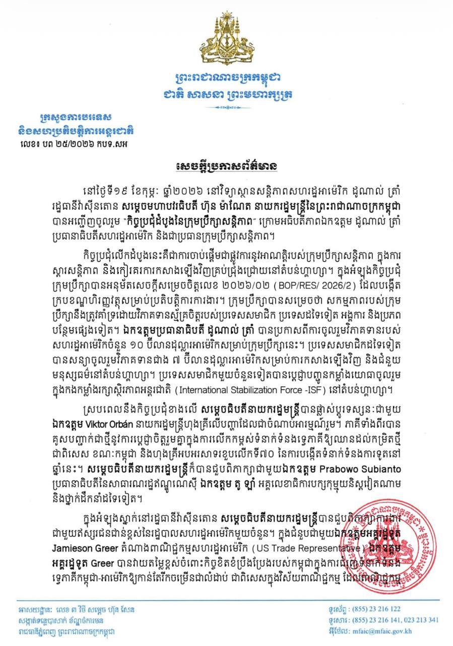 លទ្ធផលនៃការអញ្ជើញចូលរួម របស់ សម្ដេចធិបតីនាយករដ្ឋមន្រ្ដី ក្នុងកិច្ចប្រជុំដំបូងនៃក្រុមប្រឹក្សាសន្តិភាព