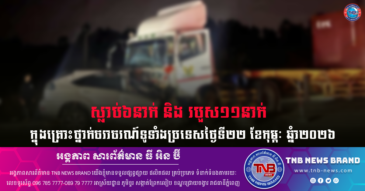 ស្លាប់៦នាក់ និងរបួស១១នាក់ ក្នុងគ្រោះថ្នាក់ចរាចរណ៍ទូទាំងប្រទេសថ្ងៃទី២២ ខែកុម្ភៈ ឆ្នំា២០២៦