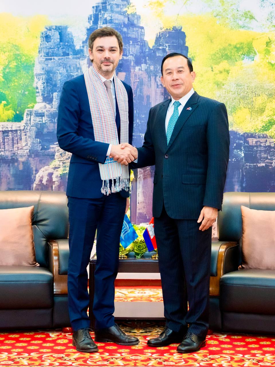 ឯកឧត្តម ហួត ហាក់ រដ្ឋមន្ត្រីក្រសួងទេសចរណ៍ បានអនុញ្ញាតជូនលោក Flavio Bonetti តំណាងអង្គការ UNESCO ប្រចាំកម្ពុជា និងសហការី ចូលជួបសម្តែងការគួរសម និងពិភាក្សាការងារពាក់ព័ន្ធនឹងការពង្រឹងកិច្ចសហប្រតិបត្តិការក្នុងវិស័យទេសចរណ៍ នាទីស្តីការក្រសួងទេសចរណ៍។