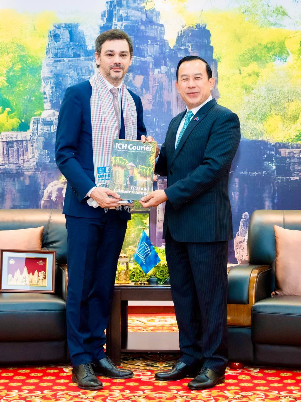 កិច្ចពិភាក្សា ក៏បានលើកឡើងពីកិច្ចសហប្រតិបត្តិការផ្នែកបច្ចេកទេសដល់ក្រសួងទេសចរណ៍លើការចុះបញ្ជីបណ្តាញទីក្រុងច្នៃប្រឌិតរបស់ UNESCO ដោយបានលើកឡើងពីភាពជោគជ័យរបស់ទីក្រុងបាត់ដំបងដែលជាប់ជាទីក្រុងច្នៃប្រឌិតផ្នែកម្ហូបអាហារ ព្រមទាំងពិចារណាលើការគាំទ្រខេត្តផ្សេងៗ នាពេលអនាគត ព្រមទាំងពិភាក្សាអំពីការគ្រប់គ្រង និងអភិវឌ្ឍតំបន់បេតិកភណ្ឌពិភពលោក ដូចជាប្រាសាទសំបូរព្រៃគុក និងប្រាសាទព្រះវិហារ ដោយផ្តោតលើការអភិរក្សតម្លៃសកលដ៏អស្ចារ្យឱ្យបានគង់វង្ស និងឋិតឋេរ សម្រាប់ជាគោលដៅទេសចរណ៍បេតិកភណ្ឌ។