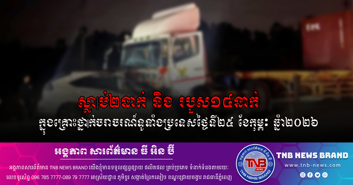 ស្លាប់២នាក់ និងរបួស១៤នាក់ ក្នុងគ្រោះថ្នាក់ចរាចរណ៍ទូទាំងប្រទេសថ្ងៃទី២៥ ខែកុម្ភៈ ឆ្នំា២០២៦