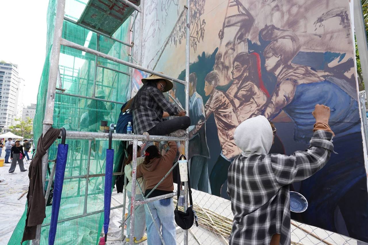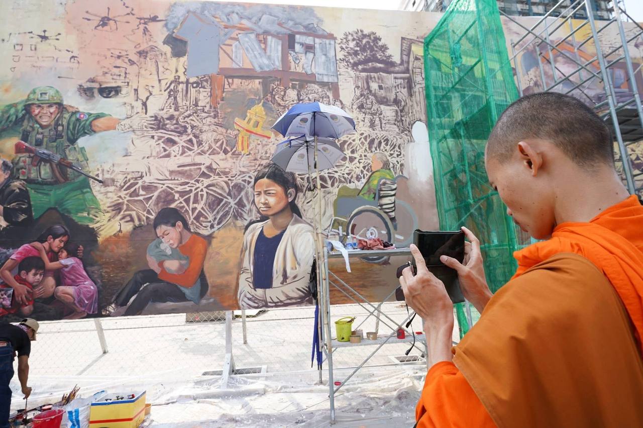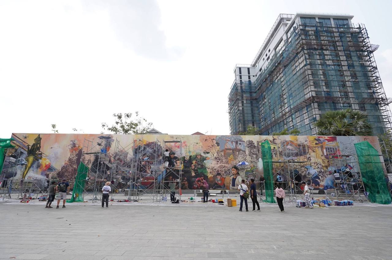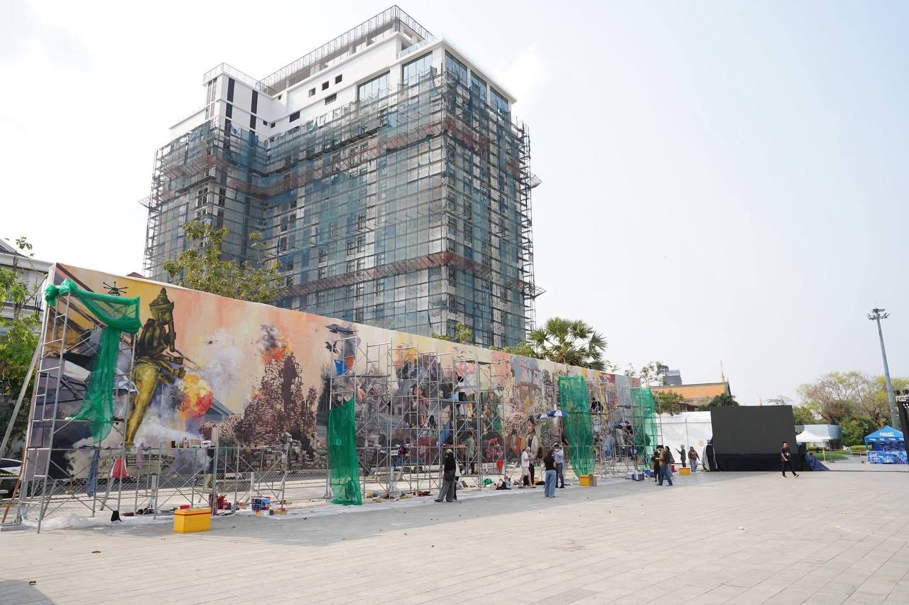 សូមជម្រាបថា ផ្ទាំងគំនូរធំទី២បន្ទាប់ពីខេត្តសៀមរាប បានរៀបចំធ្វើឡើងនៅរាជធានីភ្នំពេញ ក្រោមប្រធានបទ «រូបគំនូរសិល្បៈដើម្បីសន្តិភាព» ដែលបានចាប់ផ្តើមគូរតាំងពីថ្ងៃទី២០ ខែកុម្ភៈ ឆ្នាំ២០២៦ ដោយក្រុមវិចិត្រករជាច្រើនរូប នៅវេណមុខវត្តបទុមវតី រាជធានីភ្នំពេញ។ ផ្ទាំងគំនូរដ៏ធំនេះ មានទំហំ ៥ម៉ែត្រ គុណនឹង ៣៥ម៉ែត្រ និងគ្រោងចំណាយពេលសរុបប្រមាណ១០ថ្ងៃ ដើម្បីបញ្ចប់ការគូរ។