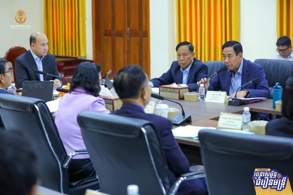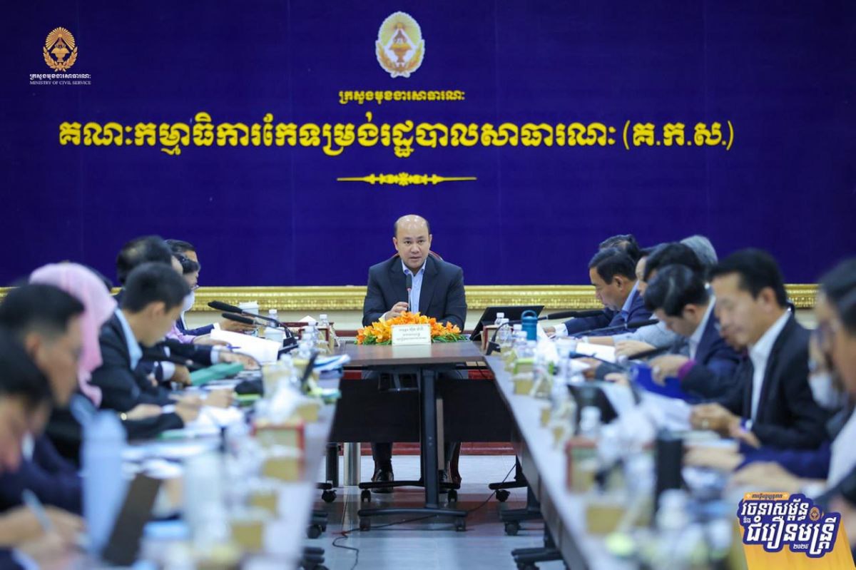 ភ្នំពេញ៖ ដើម្បីដកស្រង់បទពិសោធពីការធ្វើជំរឿនមន្ត្រីជាក់ស្តែងនៅតាមរចនាសម្ព័ន្ធនៃអង្គភាពសុខាភិបាលមូលដ្ឋាន និងគ្រឹះស្ថានសិក្សាសាធារណៈ ស្ថិតក្នុងភូមិសាស្ត្ររាជធានីភ្នំពេញ សម្រាប់ជាមេរៀនក្នុងការធ្វើជំរឿនមន្ត្រីជាក់ស្តែងនៅតាមខេត្តទាំង២៤ នាពេលខាងមុខ ឯកឧត្តម ហ៊ុន ម៉ានី ឧបនាយករដ្ឋមន្ត្រី រដ្ឋមន្ត្រីក្រសួងមុខងារសាធារណៈ និងជាប្រធានគណៈកម្មការជំរឿន បានដឹកនាំកិច្ចប្រជុំពិនិត្យវាយតម្លៃការចុះធ្វើបច្ចុប្បន្នភាពរចនាសម្ព័ន្ធ និងជំរឿនមន្ត្រីជាក់ស្តែងនៅតាមរចនាសម្ព័ន្ធនៃគ្រឹះស្ថានសិក្សាសាធារណៈ និងអង្គភាពសុខាភិបាលមូលដ្ឋាន នៅរាជធានីភ្នំពេញ នារសៀលថ្ងៃទី២៤ ខែកម្ភៈ ឆ្នាំ២០២៦។