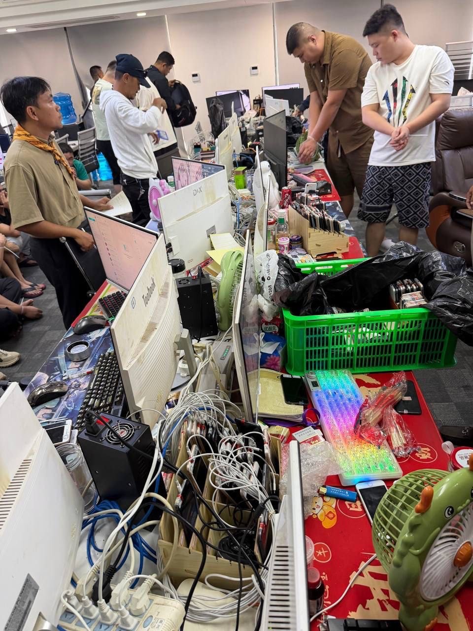 ឃាត់ខ្លួនជនសង្ស័យ ២១នាក់ ប្រតិបត្តិការឆ្មក់បង្ក្រាបសំបុក Online Scam ក្នុងសង្កាត់អូរបែកក្អម