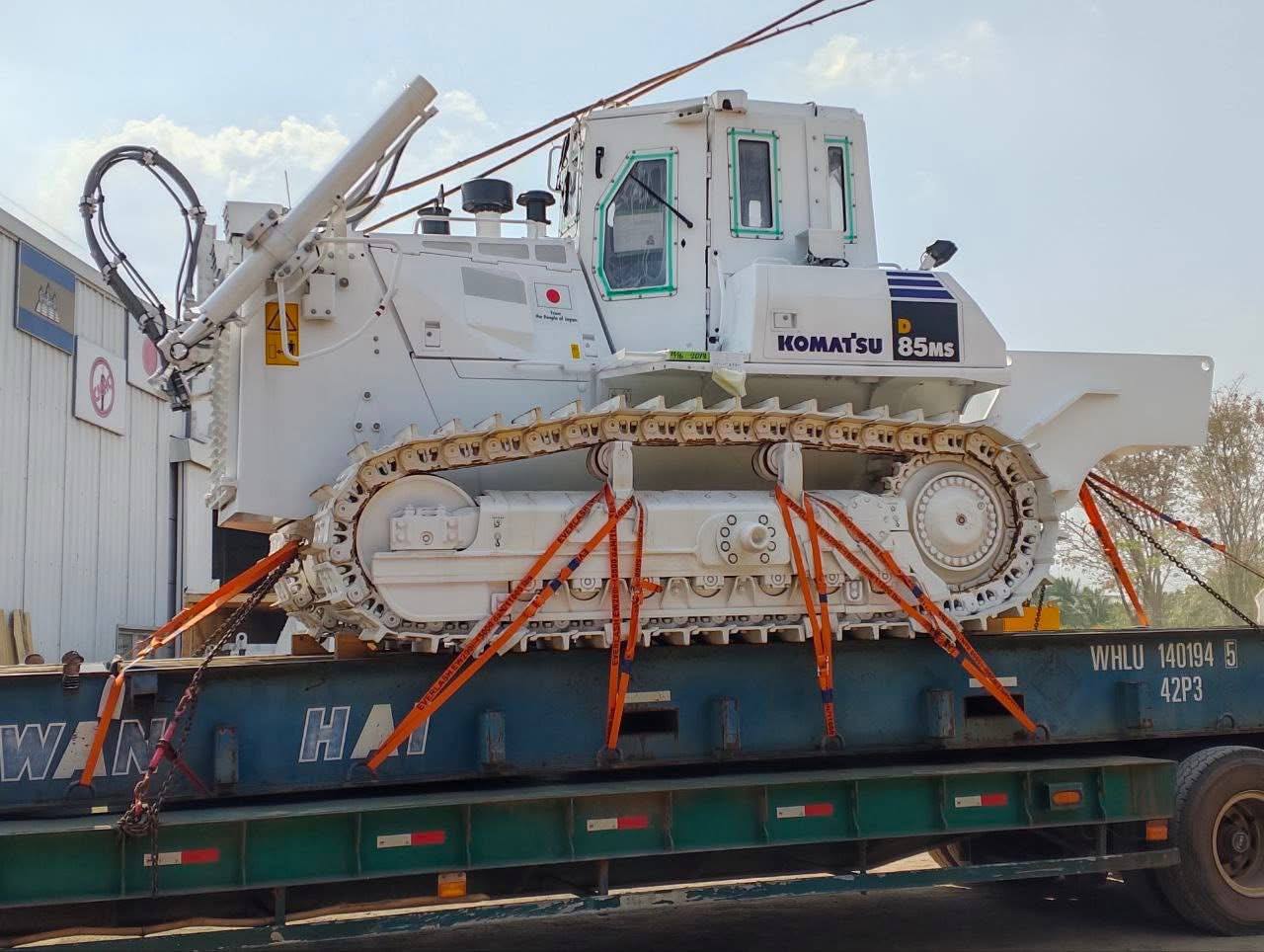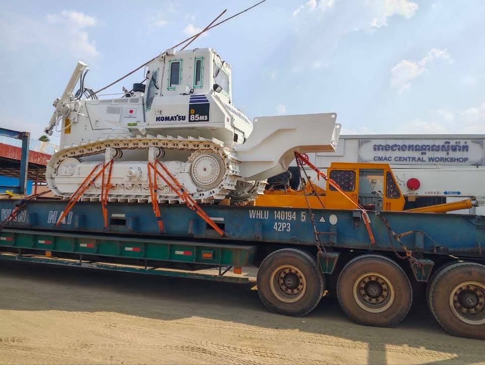 ភ្នំពេញ៖ គ្រឿងចក្រកម្ទេចមីនធុនធ្ងន់ប្រភេទ KOMATSU មានទម្ងន់ជាង ៤០តោន មានសមត្ថភាពពិសេសក្នុងការកម្ទេចមីន ដែលរដ្ឋាភិបាលជប៉ុន ប្រគល់ជូនរដ្ឋាភិបាលកម្ពុជាបានដឹកមកដល់កម្ពុជា ដេីម្បីចូលរួមកម្ទេចសំណល់យុទ្ធភណ្ឌសង្គ្រាម។