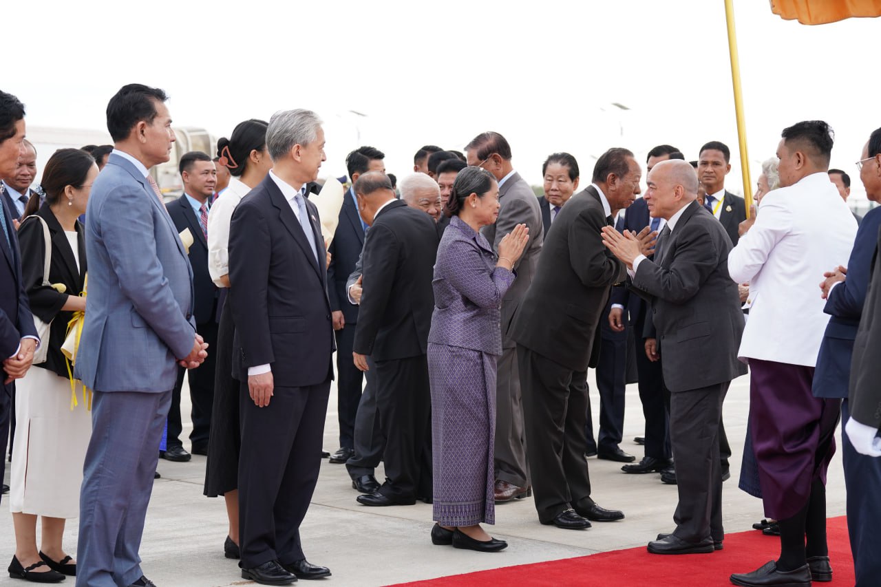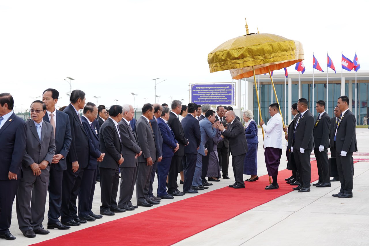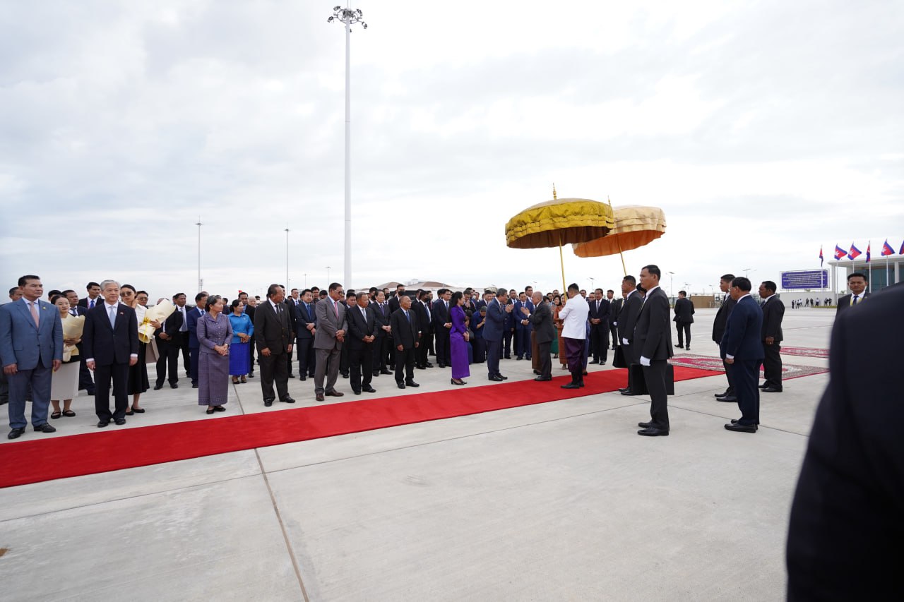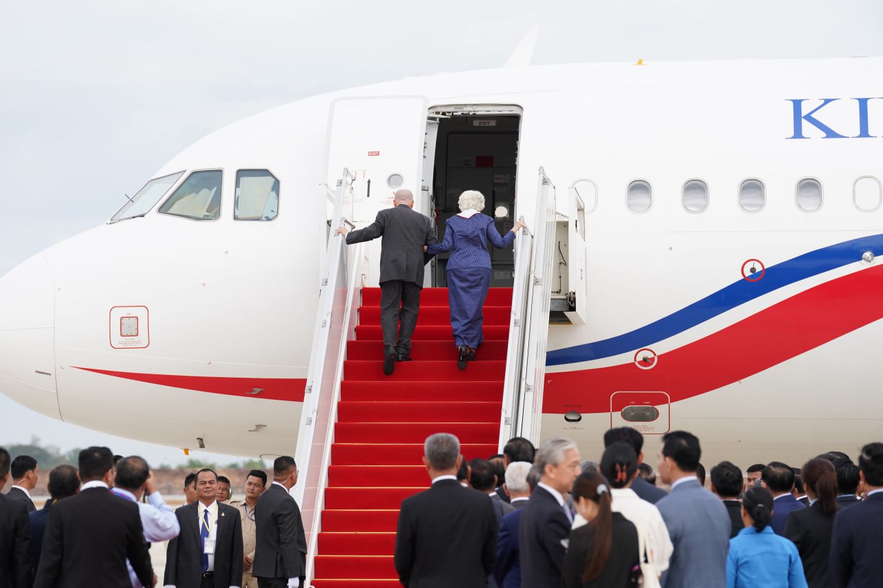 ព្រះករុណាជាអម្ចាស់ជីវិតលើត្បូង ព្រះបាទសម្តេចព្រះបរមនាថ នរោត្តម សីហមុនី ព្រះមហាក្សត្រនៃព្រះរាជាណាចក្រកម្ពុជា និងសម្តេចព្រះមហាក្សត្រី នរោត្តម មុនិនាថ សីហនុ ព្រះវររាជមាតាជាតិខ្មែរ ក្នុងសេរីភាព សេចក្តីថ្លៃថ្នូរ និងសុភមង្គល ស្តេចយាងចាកចេញពីអាកាសយានដ្ឋានអន្តរជាតិតេជោ ខេត្តកណ្តាល ឆ្ពោះទៅកាន់ទីក្រុងប៉េកាំង សាធារណរដ្ឋប្រជាមានិតចិន នាថ្ងៃទី២៧ ខែកុម្ភៈ ឆ្នាំ២០២៦ ដើម្បីពិនិត្យព្រះរាជសុខភាព។