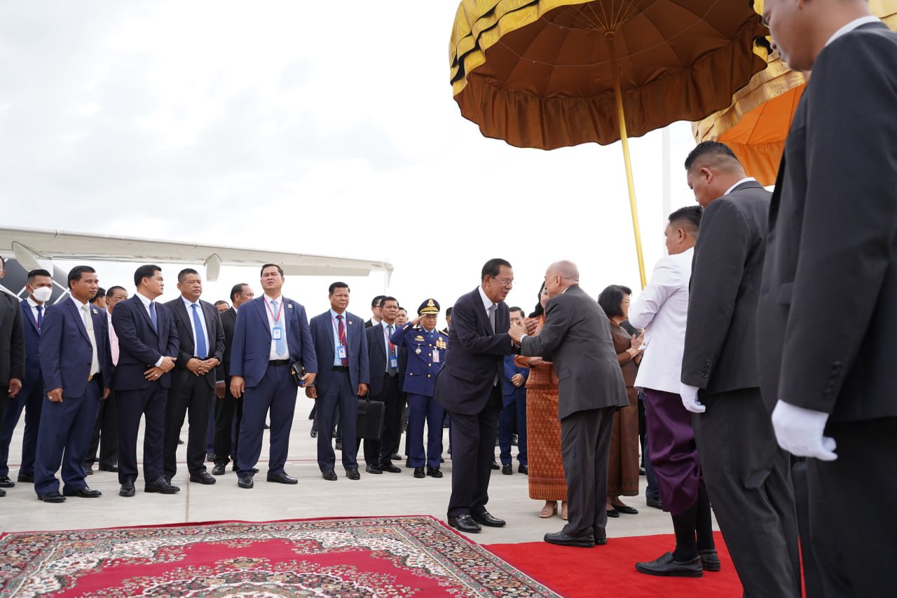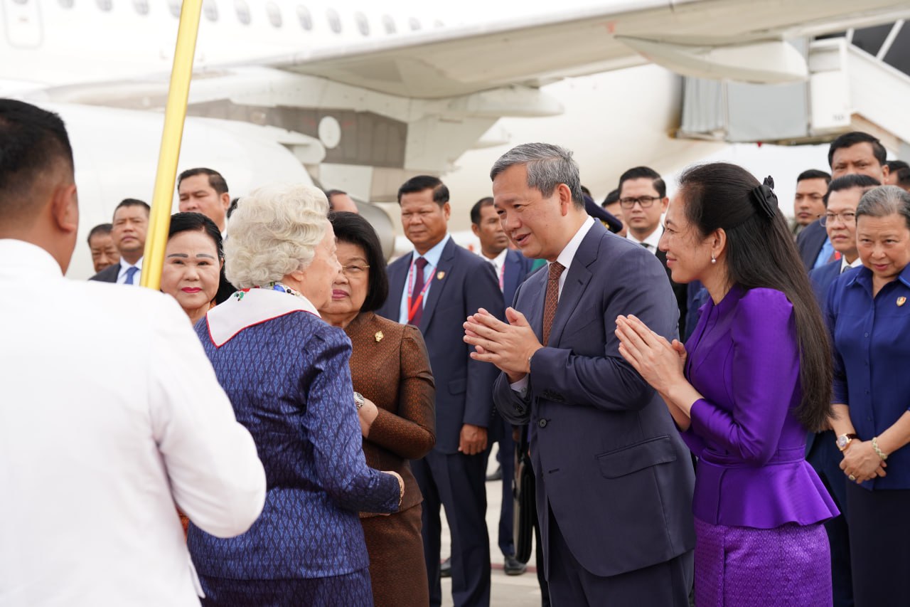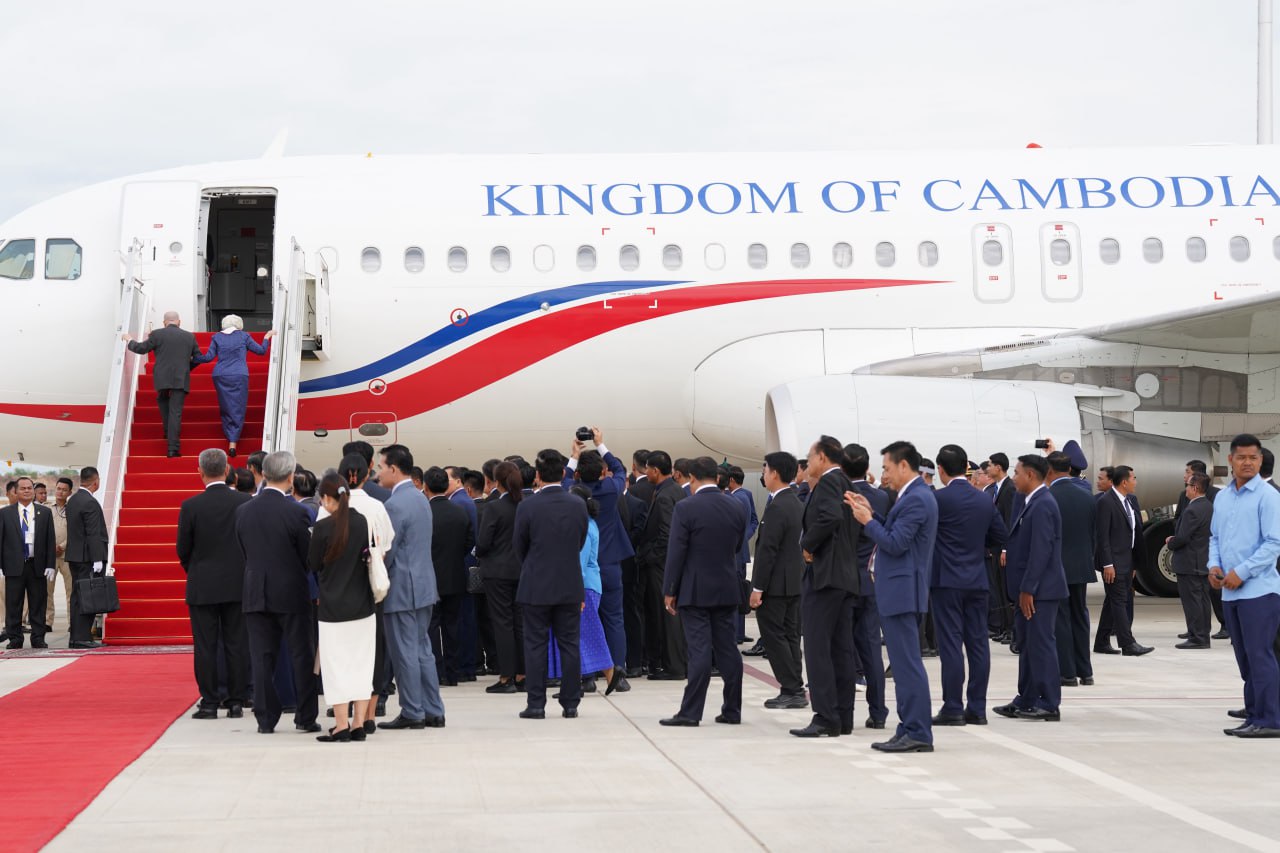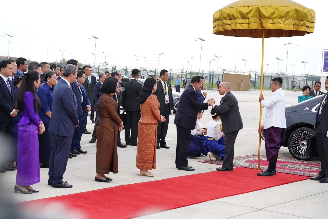 ព្រះករុណាជាអម្ចាស់ជីវិតលើត្បូង ព្រះបាទសម្តេចព្រះបរមនាថ នរោត្តម សីហមុនី ព្រះមហាក្សត្រនៃព្រះរាជាណាចក្រកម្ពុជា និងសម្តេចព្រះមហាក្សត្រី នរោត្តម មុនិនាថ សីហនុ ព្រះវររាជមាតាជាតិខ្មែរ ក្នុងសេរីភាព សេចក្តីថ្លៃថ្នូរ និងសុភមង្គល ស្តេចយាងចាកចេញពីអាកាសយានដ្ឋានអន្តរជាតិតេជោ ខេត្តកណ្តាល ឆ្ពោះទៅកាន់ទីក្រុងប៉េកាំង សាធារណរដ្ឋប្រជាមានិតចិន នាថ្ងៃទី២៧ ខែកុម្ភៈ ឆ្នាំ២០២៦ ដើម្បីពិនិត្យព្រះរាជសុខភាព។