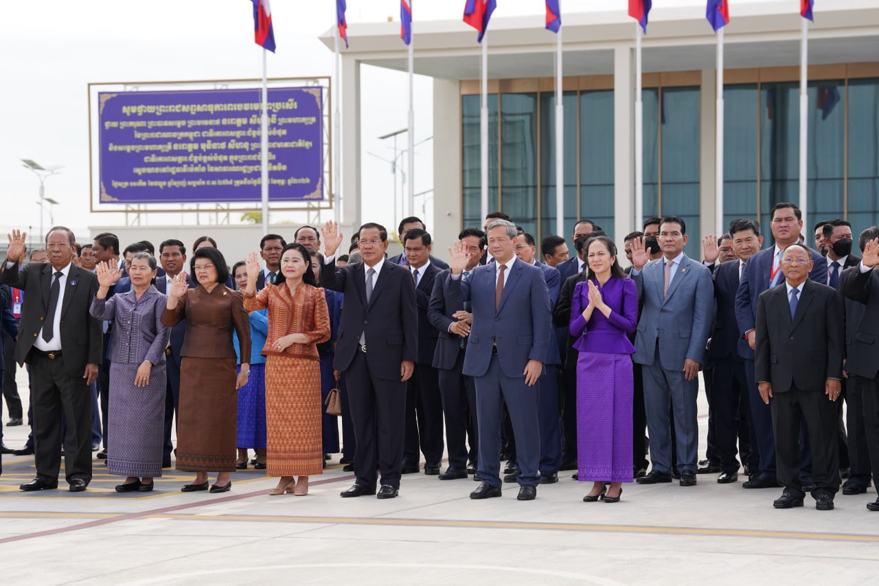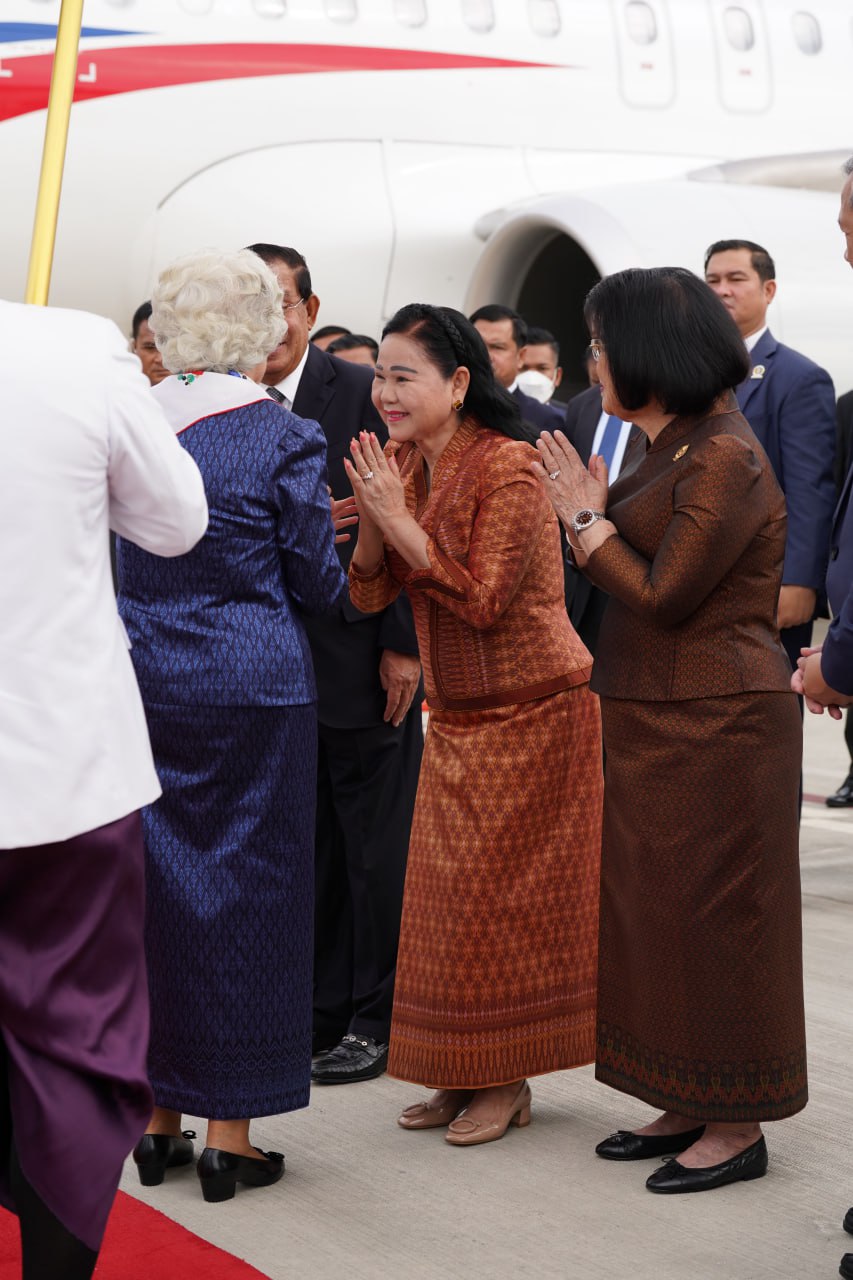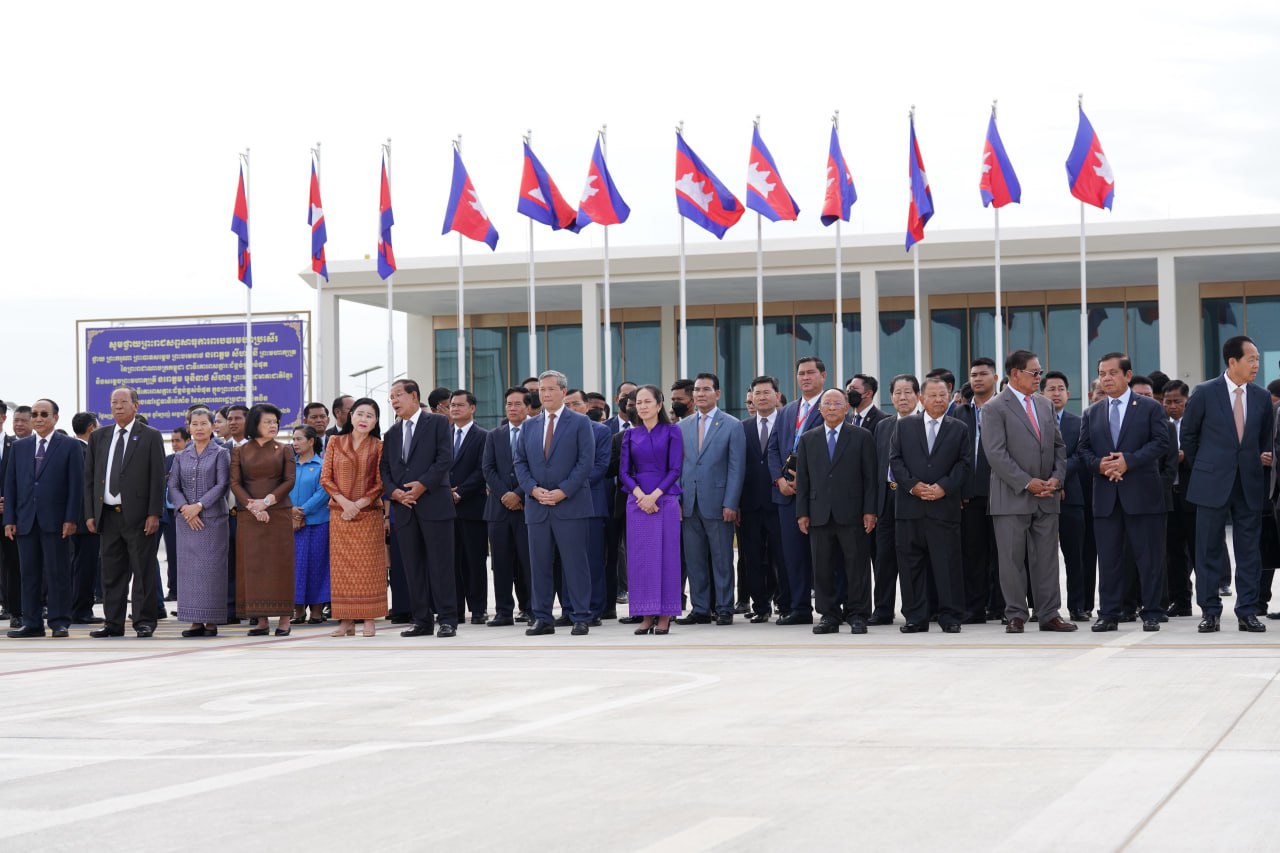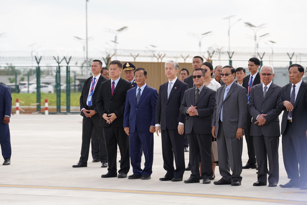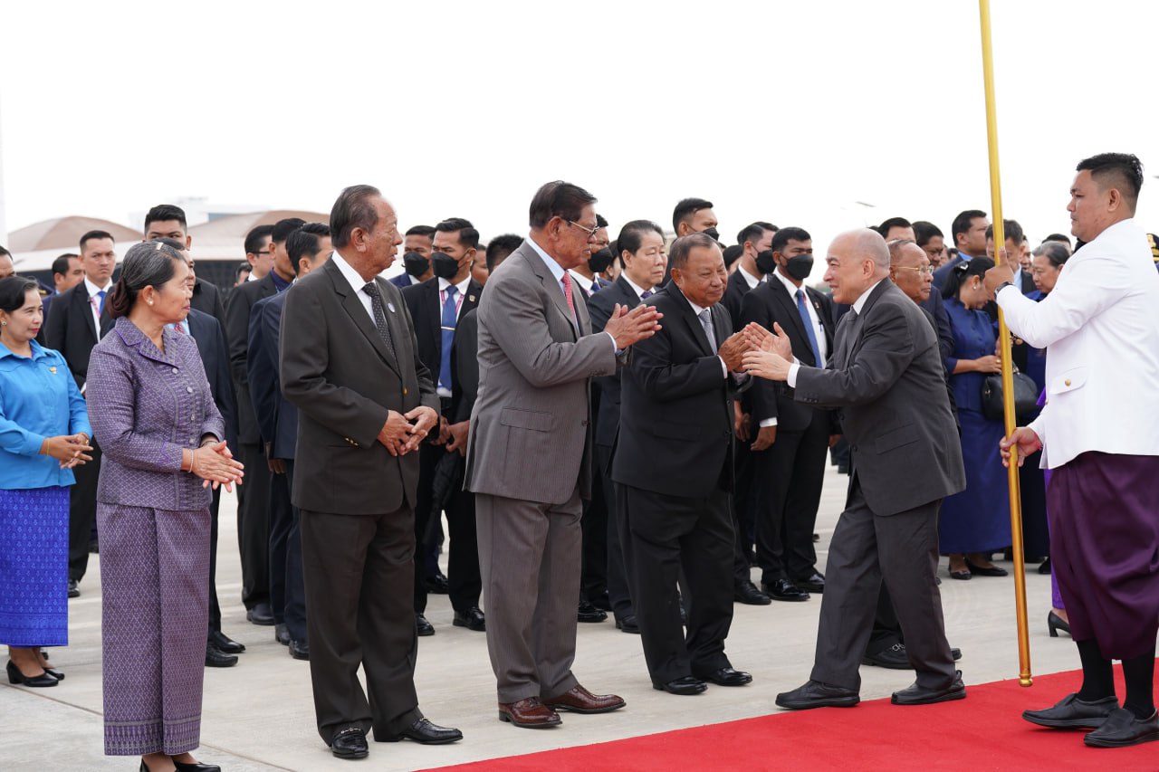 យាង និងអញ្ជើញថ្វាយព្រះរាជដំណើរព្រះអង្គទាំងទ្វេ នៅអាកាសយានដ្ឋានអន្តរជាតិតេជោ មានវត្តមាន សម្ដេចអគ្គមហាសេនាបតីតេជោ ហ៊ុន សែន ប្រធានក្រុមឧត្ដមប្រឹក្សាផ្ទាល់ព្រះមហាក្សត្រ និងជាប្រធានព្រឹទ្ធសភានៃព្រះរាជាណាចក្រកម្ពុជា និងសម្ដេចកិត្តិព្រឹទ្ធបណ្ឌិត ប៊ុន រ៉ានី ហ៊ុនសែន សម្ដេចមហារដ្ឋសភាធិការធិបតី ឃួន សុដារី ប្រធានរដ្ឋសភា សម្ដេចមហាបវរធិបតី ហ៊ុន ម៉ាណែត នាយករដ្ឋមន្ត្រីនៃព្រះរាជាណាចក្រកម្ពុជា និងលោកជំទាវបណ្ឌិត ព្រមទាំងសម្ដេច ឯកឧត្ដម លោកជំទាវ ជាសមាជិកសមាជិកាឧត្ដមប្រឹក្សាផ្ទាល់ព្រះមហាក្សត្រ ព្រះរាជវង្សានុវង្ស និងឯកឧត្តម Wang Wenbin ឯកអគ្គរដ្ឋទូតសាធារណរដ្ឋប្រជាមានិតចិន ប្រចាំនៅកម្ពុជាផងដែរ។