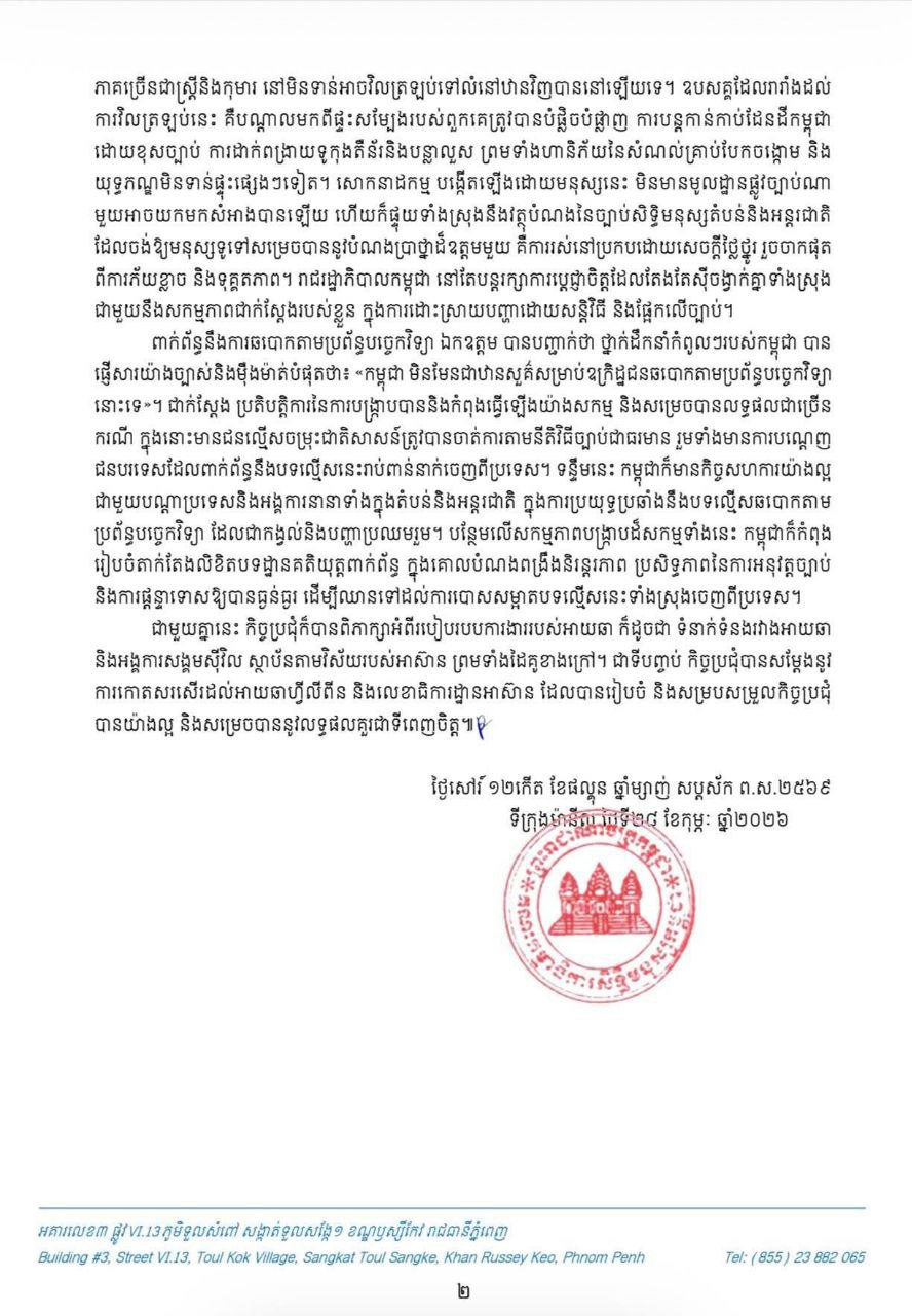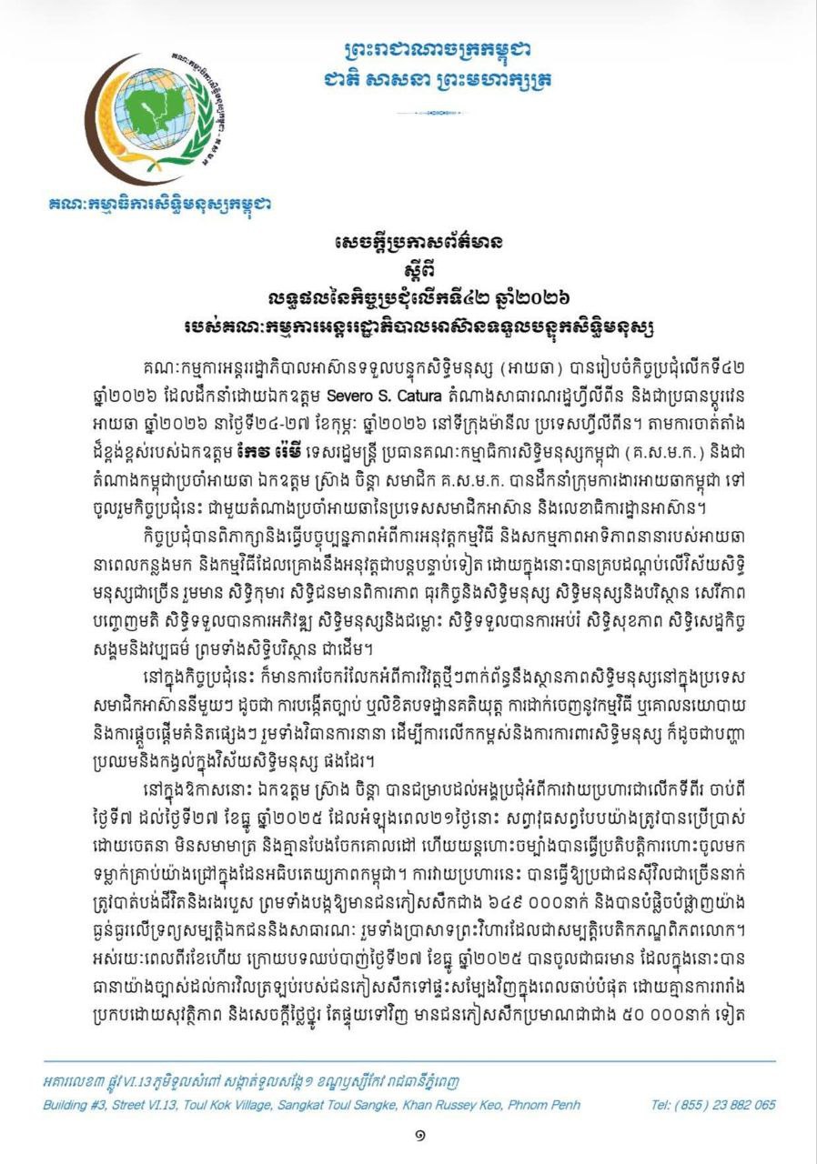លទ្ធផលនៃកិច្ចប្រជុំលើកទី៤២ ឆ្នាំ២០២៦ របស់គណៈកម្មការអន្តររដ្ឋាភិបាលអាស៊ានទទួលបន្ទុកសិទ្ធិមនុស្ស