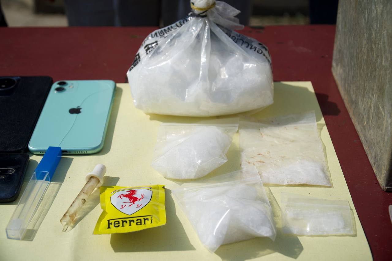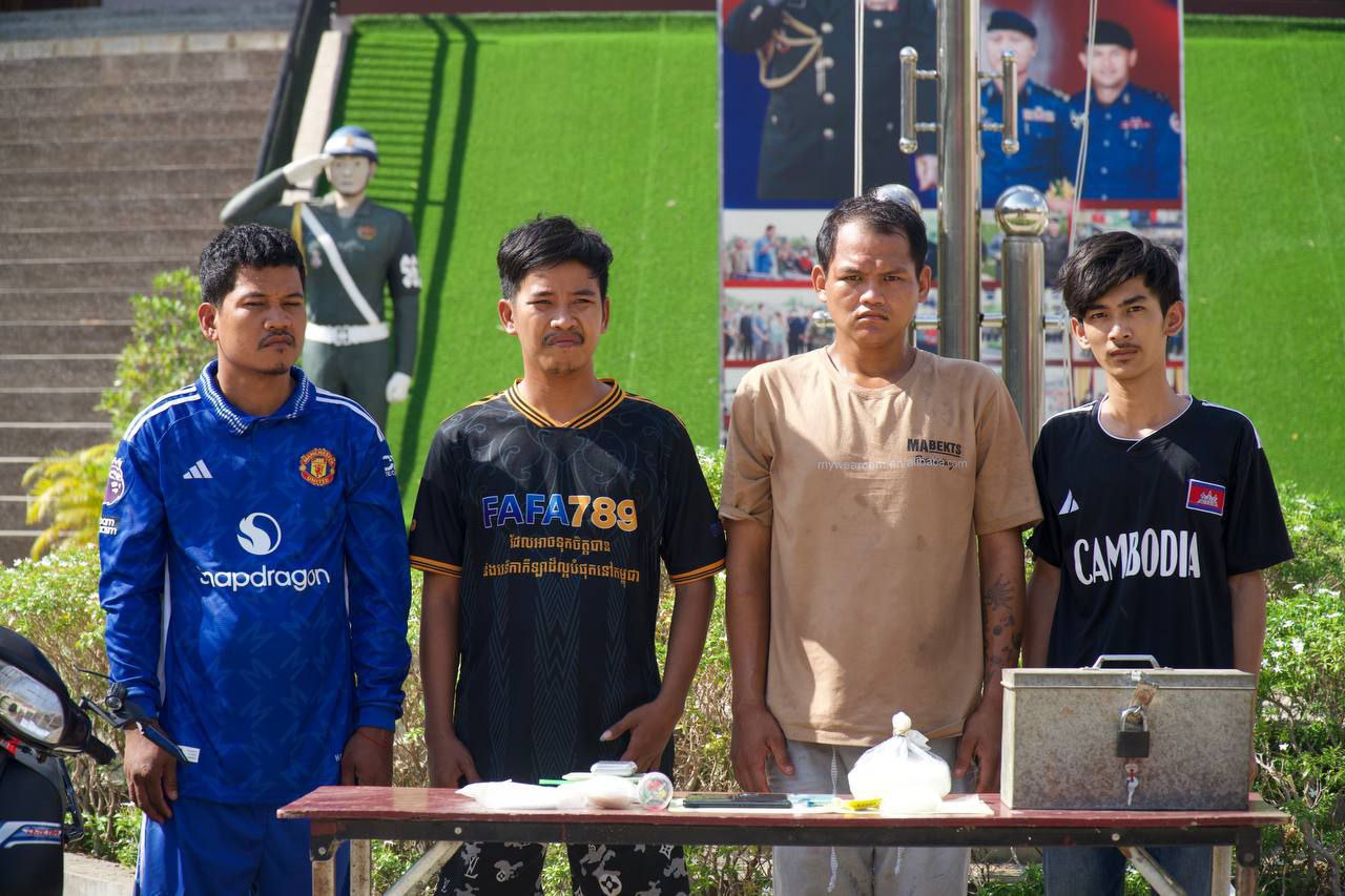បន្ទាយមានជ័យ៖ នៅថ្ងៃទី២៨ ខែកុម្ភៈ ឆ្នាំ២០២៦ កម្លាំងមូលដ្ឋានកងរាជអាវុធហត្ថក្រុងសិរីសោភ័ណ ដឹកនាំដោយលោក វរសេនីយ៍ត្រីសុខ ឡេង មេបញ្ជាការមូលដ្ឋានកងរាជអាវុធហត្ថក្រុងបានធ្វើប្រតិបត្តិការបង្រ្កាបករណីជួញដូរ រក្សាទុក និងប្រើប្រាស់ដោយខុសច្បាប់នូវសារធាតុញៀន ឃាត់ខ្លួនជនសង្ស័យចំនួន៤នាក់ ១-ឈ្មោះ ចាប ចំរើន ហៅ មើន ភេទ ប្រុស អាយុ២៩ឆ្នាំ ជនជាតិខ្មែរ, ២-ឈ្មោះ ហង្ស រស្មី ភេទប្រុស អាយុ១៩ឆ្នាំ ជនជាតិខ្មែរ, ៣-ឈ្មោះ ឈុំ ចំរើន ហៅ ង៉ា ភេទប្រុស អាយុ៣១ឆ្នាំ ជនជាតិខ្មែរ, ៤-ឈ្មោះ រ៉េត ដានិត ភេទប្រុស អាយុ២៧ឆ្នាំ ជនជាតិខ្មែរ នៅចំណុចបន្ទប់ជួល ស្ថិតក្នុងភូមិខ្លាកូនថ្មី សង្កាត់កំពង់ស្វាយ ក្រុងសិរីសោភ័ណ ខេត្តបន្ទាយមានជ័យ ព្រមទាំង ដកហូតវត្ថុតាងគ្រឿងញៀនប្រភេទម្ស៉ៅក្រាមពណ៌សថ្លា (ICE) ចំនួន០១កញ្ចប់ធំ និង០៤ថង់កិប ទម្ងន់ ៦៩៣,៩ក្រាម, កញ្ចប់ម្ស៉ៅពណ៌លឿងមានរូបសេះពណ៌ក្រហម (អ៊ិចស្តាស៊ី) ចំនួន០១កញ្ចប់ ទម្ងន់ ៥,៥០ក្រាម, ម៉ូតូ ចំនួន០២គ្រឿង, ទូរស័ព្ទចំនួន ០៤គ្រឿង, ញ្ជីងសម្រាប់ថ្លឹងគ្រឿងញៀន ចំនួន ០២គ្រឿង រួមនឹងសម្ភារៈសម្រាប់ប្រាស់គ្រឿងញៀនមួយចំនួន ហើយនាំមកកាន់មូលដ្ឋានកងរាជអាវុធហត្ថក្រុងដើម្បីសួរនាំតាមនីតិវិធី។
