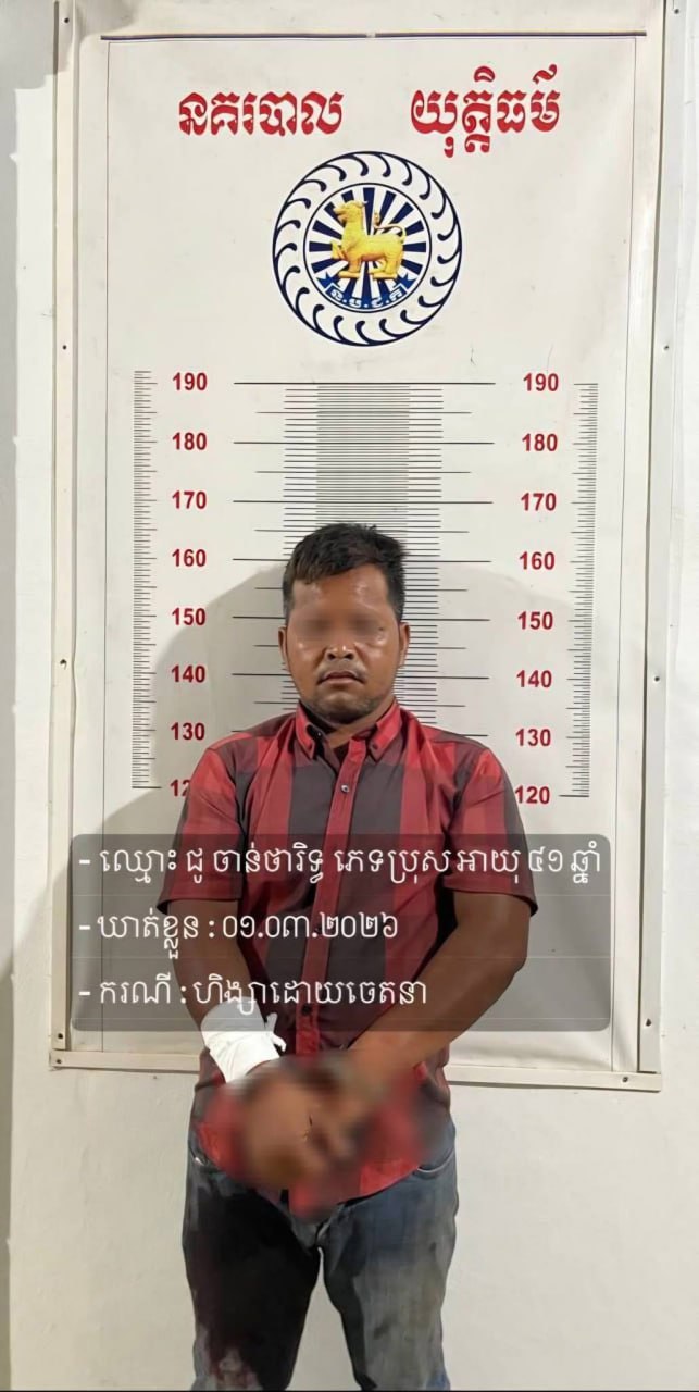 ខេត្តកំពង់ស្ពឺ ÷ នៅថ្ងៃទី០១ ខែមីនា ឆ្នាំ២០២៦ នៅចំណុចភូមិឈើទាលជ្រុំ ឃុំត្រពាំងជោ ស្រុកឱរ៉ាល់ ខេត្តកំពង់ស្ពឺ មានករណីហិង្សាដោយចេតនាមួយកើតឡើងបង្ករដោយជនសង្ស័យឈ្មោះ ជូ ថារិទ្ធ ភេទប្រុស អាយុ ៤៦ឆ្នាំ រស់នៅភូមិព្រៃផ្ដៅ ឃុំត្រពាំងជោ ស្រុកឱរ៉ាល់ ខេត្តកំពង់ស្ពឺ បានធ្វើសកម្មភាពប្រើដៃវាយទៅលើកញ្ចក់រថយន្ត របស់ជនរងគ្រោះឈ្មោះ ខេន វុធថៃ ភេទប្រុស អាយុ២២ឆ្នាំរស់នៅភូមិអង្គ ឃុំរុងរឿង ស្រុកថ្ពង ខេត្តកំពង់ស្ពឺ បណ្ដាលឲ្យបែកកញ្ចក់ទ្វាមុខខូចខាតទាំងស្រុង និងវាយទៅលើប្រពន្ធជនរងគ្រោះឈ្មោះ ថា មានអឺ ភេទស្រី អាយុ ២២ឆ្នាំ រស់នៅភូមិអង្គ ឃុំរុងរឿង ស្រុកថ្ពង ខេត្តកំពង់ស្ពឺ ចំមុខមួយដៃថែមទៀត ក្នុងខណៈពេលជនរងគ្រោះមកចូលរួមកម្មវិធីមង្គលការបងប្អូនសាច់ញាតិនៅភូមិ ឃុំកើតហេតុខាងលើ ។