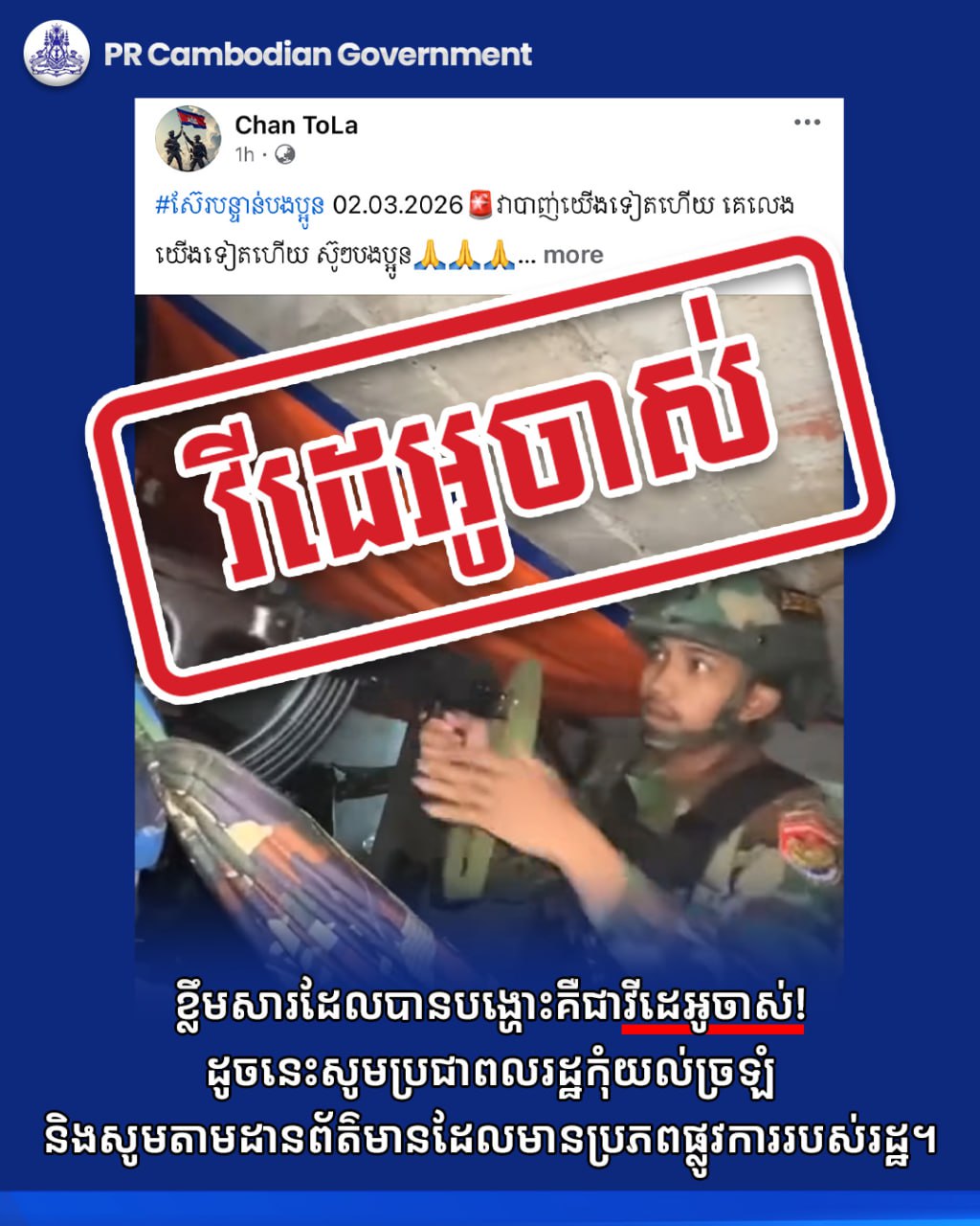 ដូចនេះសូមប្រជាពលរដ្ឋកុំយល់ច្រឡំ និងសូមតាមដានព័ត៌មានដែលមានប្រភពផ្លូវការរបស់រដ្ឋ។