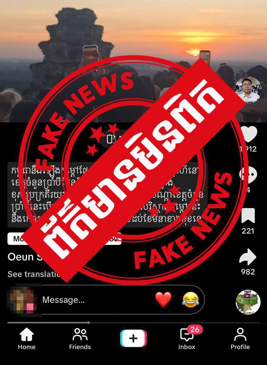 ភ្នំពេញ៖ ក្រសួងបរិស្ថាន មិនដែលបានជូនដំណឹងទាក់ទងនឹងករណីមានកំដៅផែនដីនៅកម្ពុជានោះឡើយ។ ការផ្សាយកន្លងមកពីបណ្ដាញផ្សព្វផ្សាយសង្គមមួយចំនួននេះធ្វើឲ្យសាធារណជនមានការភាន់ច្រឡំនិងបង្កឲ្យមានភាពវឹកវរនៅក្នុងសង្គម។ អាស្រ័យហេតុនេះ សូមសាធារណជនមេត្តាជ្រាបនិងសូមកុំចែករំលែកព័ត៌មានមិនពិតនេះតទៅទៀត។