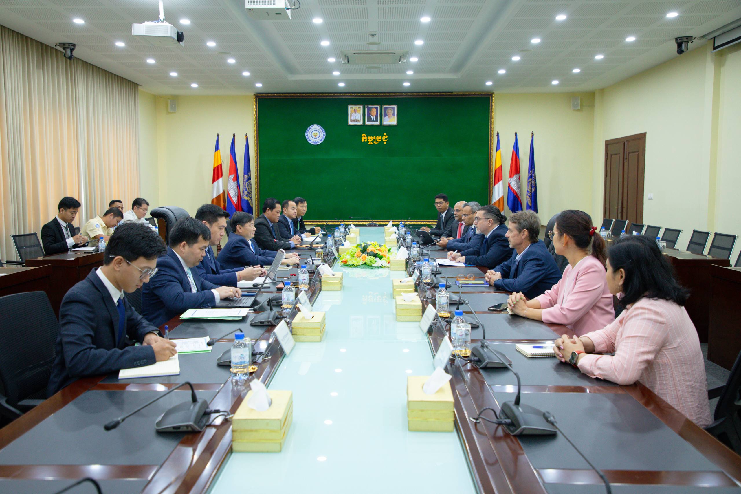 ឯកឧត្តម ហេង សួរ រដ្ឋមន្ត្រីក្រសួងការងារ និងបណ្ដុះបណ្ដាលវិជ្ជាជីវៈ បានទទួលជួបសម្តែងការគួរសម និងពិភាក្សាការងារជាមួយលោក អេនរីកូ ហ្គាវេលីយ៉ា (Enrico Gaveglia) តំណាងកម្មវិធីអភិវឌ្ឍន៍សហប្រជាជាតិ (UNDP) ប្រចាំកម្ពុជា នាព្រឹកថ្ងៃអង្គារ ទី៣ ខែមីនា ឆ្នាំ២០២៦ នៅទីស្តីការក្រសួង ដើម្បីពិនិត្យវឌ្ឍនភាពនៃកិច្ចសហប្រតិបត្តិការក្នុងគោលបំណងជំរុញ និងផ្ដួចផ្ដើមការងារយុទ្ធសាស្ត្រចំនួនពីរ ទី (១) ការធ្វើពិពិធកម្មការវិនិយោគនៃមូលនិធិសោធន ដើម្បីធានានូវនិរន្តរភាព និងការរីកលូតលាស់នៃកញ្ចប់ថវិកាសោធនសម្រាប់បងប្អូនកម្មករនិយោជិត និងទី (២) ការវិនិយោគដែលស្របតាមគោលការណ៍បរិស្ថាន សង្គម និងអភិបាលកិច្ច (ESG) នៅក្នុងប្រទេសកម្ពុជា ស្របតាមស្មារតីនៃអនុស្សរណៈនៃការយោគយល់គ្នា (MoU) ដែលស្ថាប័នទាំងពីរបានចុះហត្ថលេខាកាលពីថ្ងៃទី៩ ខែធ្នូ ឆ្នាំ២០២៥។