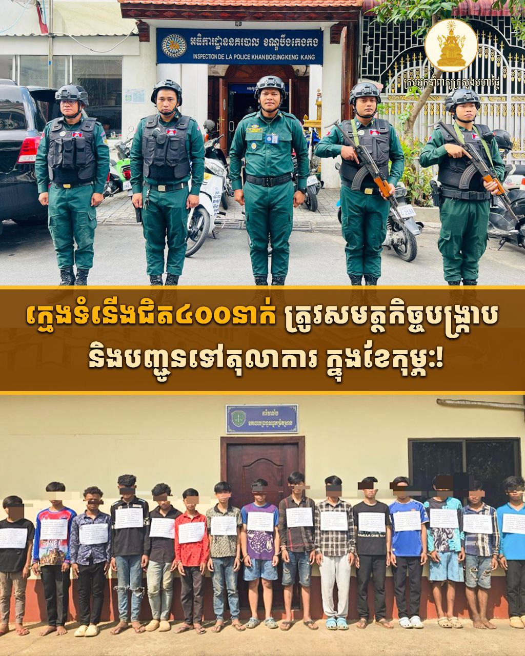 ក្មេងទំនើងជិត៤០០នាក់ សមត្ថកិច្ចបង្ក្រាប និងបញ្ជូនទៅតុលាការ ក្នុងខែកុម្ភៈ!