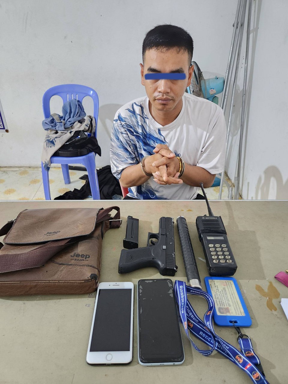 ដោយមានការណែនាំពីលោកវរសេនីយ៍ឯក អ៊ុក បូនីន អធិការ នៃអធិការដ្ឋាននគរបាលខណ្ឌមានជ័យ ដឹកនាំដោយលោកវរសេនីយ៍ទោ នូ ប្រីយសត្យា អធិការរង នៅថ្ងៃទី០៥ ខែមីនា ឆ្នាំ២០២៦ កម្លាំងផ្នែកនគរបាលយុត្តិធម៌ កំពុងធ្វើការល្បាតនៅក្នុងមូលដ្ឋាន ក៏មានការរាយការណ៍ពីប្រជាពលរដ្ឋថា មានករណី កាន់កាប់អាវុធដោយខុសច្បាប់ ភ្លាមនោះសមត្ថកិច្ចយើងក៏បានចុះទៅដល់ចំណុចកើតហេតុផ្លូវលូប្រាំ ភូមិទ្រា៤ សង្កាត់ស្ទឹងមានជ័យទី៣ ខណ្ឌមានជ័យ រាជធានីភ្នំពេញ ឃាត់បានជនសង្ស័យចំនួន ០១នាក់ រួមទាំងវត្ថុតាងមកធ្វើការសាកសួរនៅប៉ុស្តិ៍នគរបាលរដ្ឋបាលស្ទឹងមានជ័យទី៣ ។