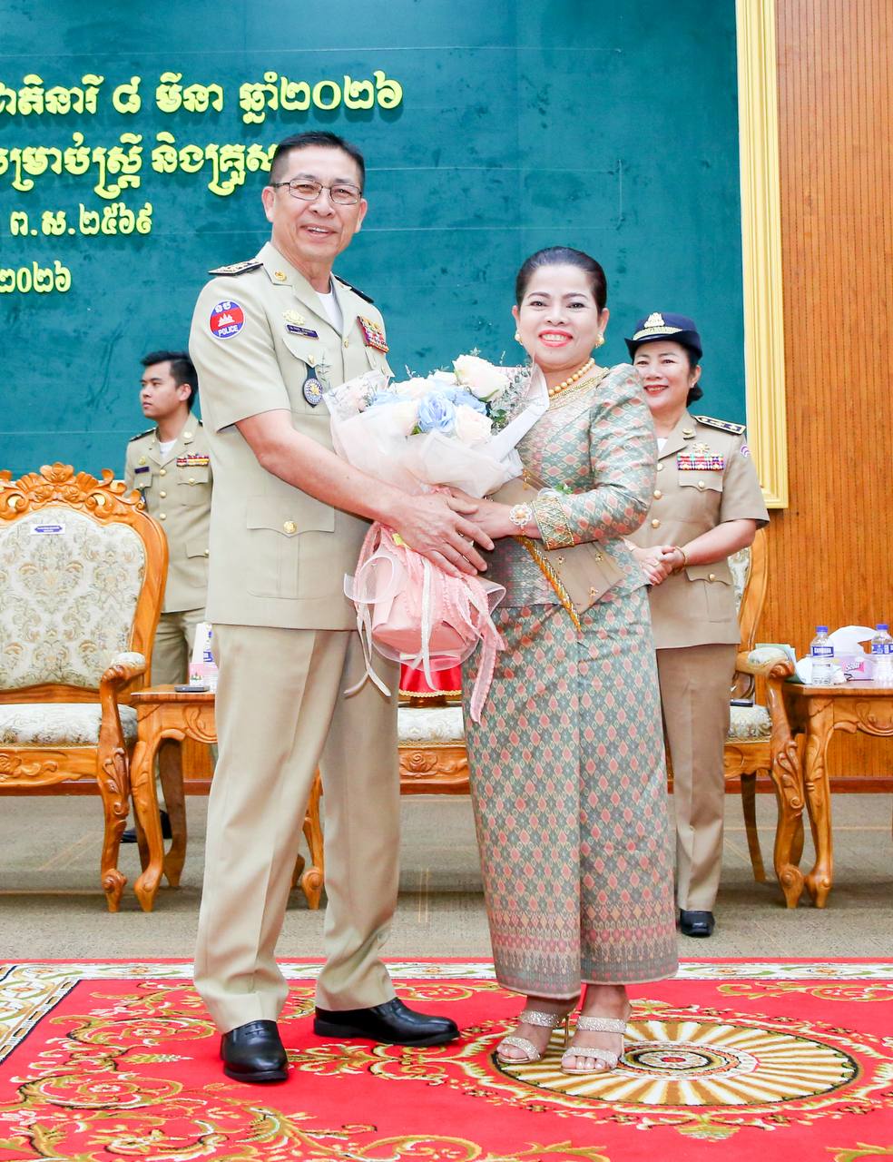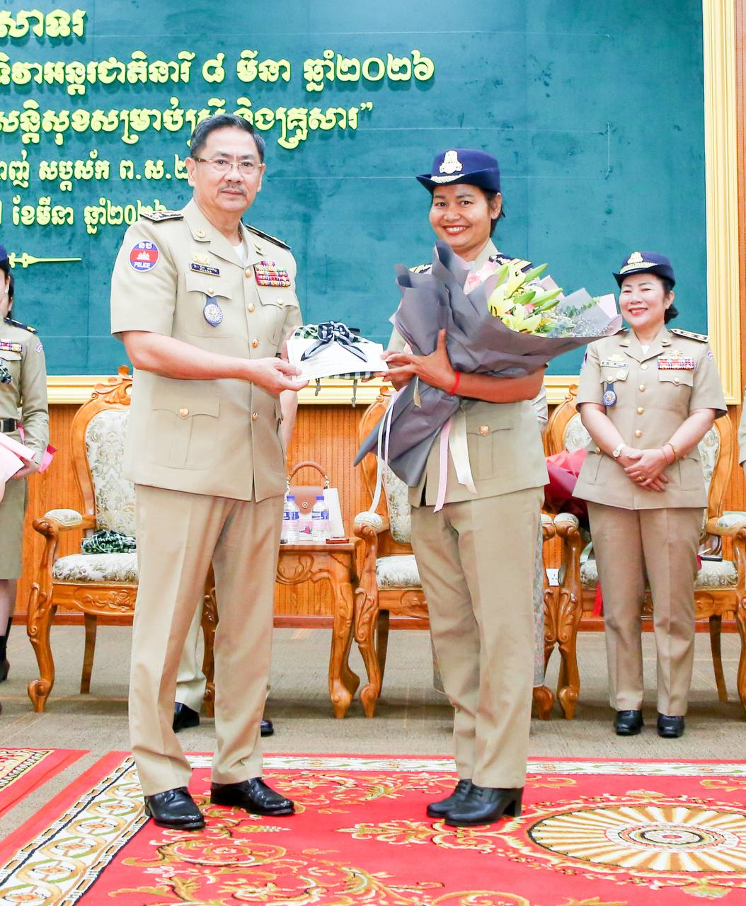 លោកស្នងការ និងលោកស្នងការង ក៏បានអញ្ជើញប្រគល់បាច់ផ្កាជូន មន្ត្រីនគរបាលជានារី និងភរិយា និងបានថតរូបទុកជាអនុស្សាវរីយ៍ផងដែរ៕