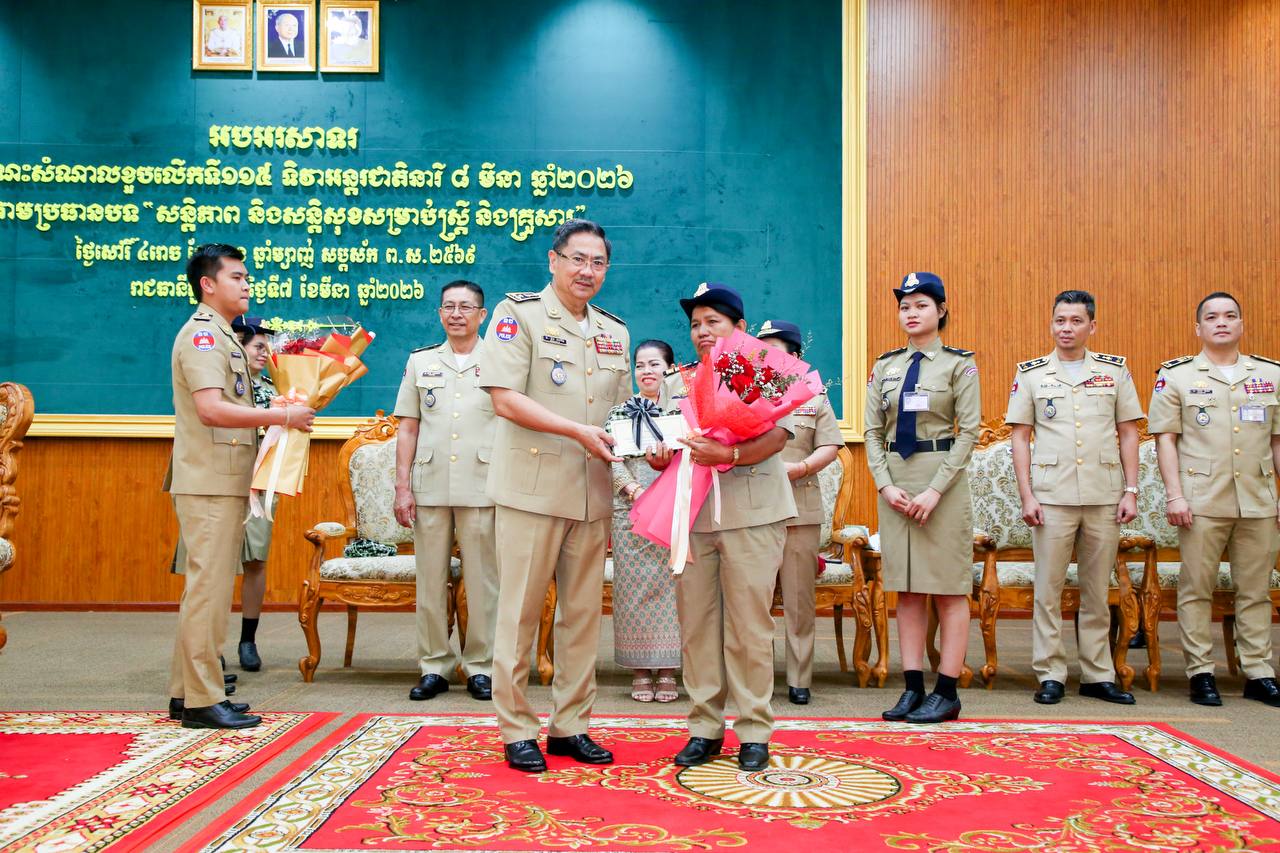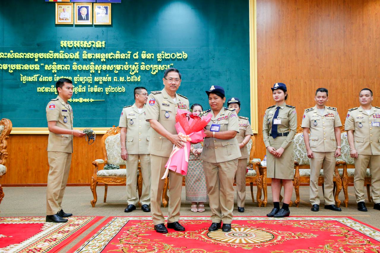 (ភ្នំពេញ)៖ ឧត្តមសេនីយ៍ឯក ជួន ណារិន្ទ អគ្គស្នងការរង និងជាស្នងការនគរបាលរាជធានីភ្នំពេញ នារសៀលថ្ងៃទី៧ ខែមីនា ឆ្នាំ២០២៦ បានរៀបចំពិធីសំណេះសំណាលខួបលើកទី១១៥ ទិវាអន្តរជាតិនារី ០៨ មីនា ឆ្នាំ២០២៦ ក្រោមប្រធានបទ «សន្តិភាព និងសន្តិសុខសម្រាប់ស្ត្រី និងគ្រួសារ»។
