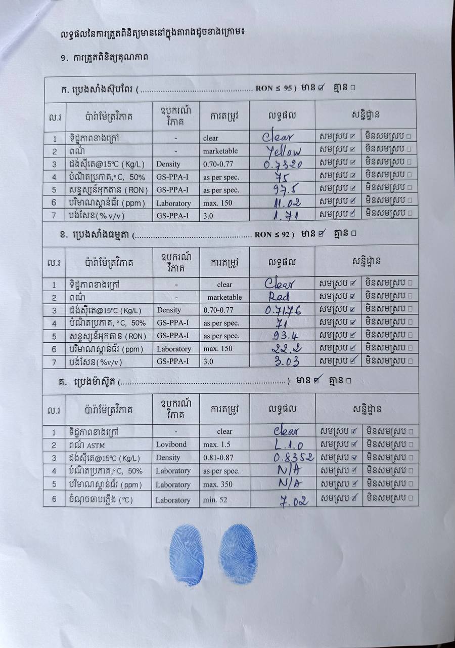 (ភ្នំពេញ)៖ ដេប៉ូលក់សាំងយីហោ PEACE រងការផាកពិន័យ៤លានរៀល ក្រោយមិនដាក់តម្លៃនិងលក់លើសតម្លៃជាង៦០០០ពាន់រៀល នៅតាងួន សង្កាត់កាកាបទី១ ខណ្ឌពោធិ៍សែនជ័យ រាជធានីភ្នំពេញ ថ្ងៃទី០៨ ខែមីនា ឆ្នាំ២០២៦ ។