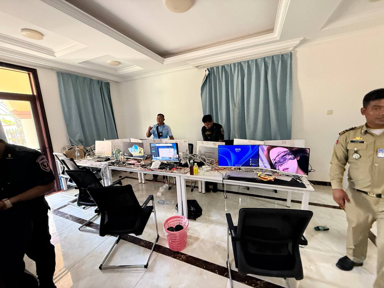 (ព្រះសីហនុ)៖ អនុវត្តតាមបទបញ្ជារបស់ លោក ម៉ាងស៊ីណេត អភិបាលខេត្ត គណៈបញ្ជាការឯកភាពខេត្តព្រះសីហនុ ដឹកនាំដោយលោក មីន កុម្ភៈ អភិបាលរងខេត្ត ដោយមានការសម្របសម្រួលនីតិវិធីពីលោក ឆាយ សុត្រា ព្រះរាជអាជ្ញារង អមសាលាដំបូងខេត្ត នៅរសៀលថ្ងៃទី៩ ខែមីនា ឆ្នាំ២០២៦ បានចុះបង្ក្រាបករណី Scam Online និងជនបរទេសដែលស្នាក់នៅដែលខុសច្បាប់ នៅលើទីតាំងបុរីស៊ីឡុងប៊េ ស្ថិតនៅភូមិអុង សង្កាត់រាម ក្រុងកំពង់សោម ខេត្តព្រះសីហនុ។