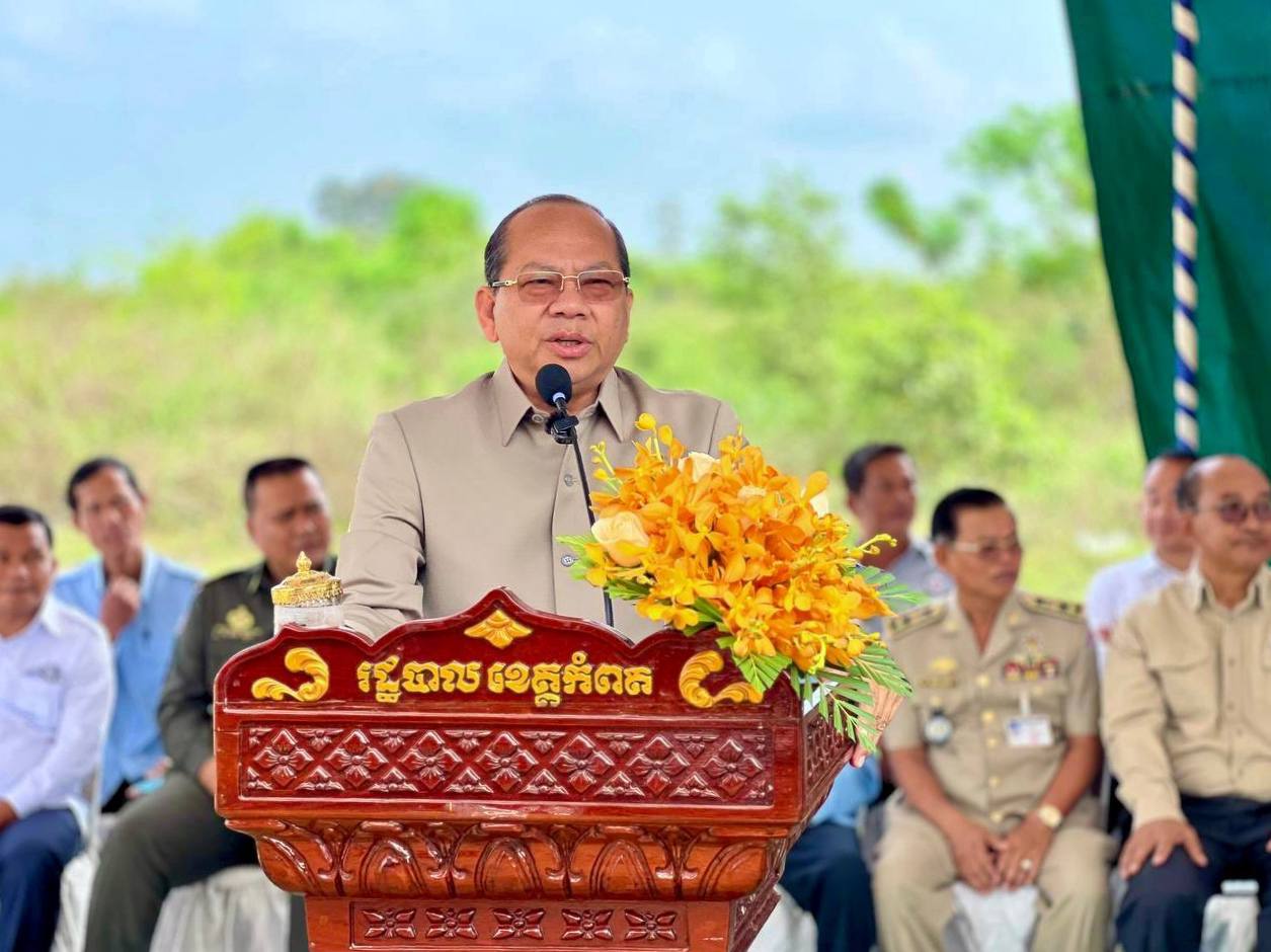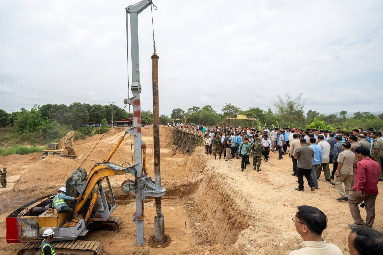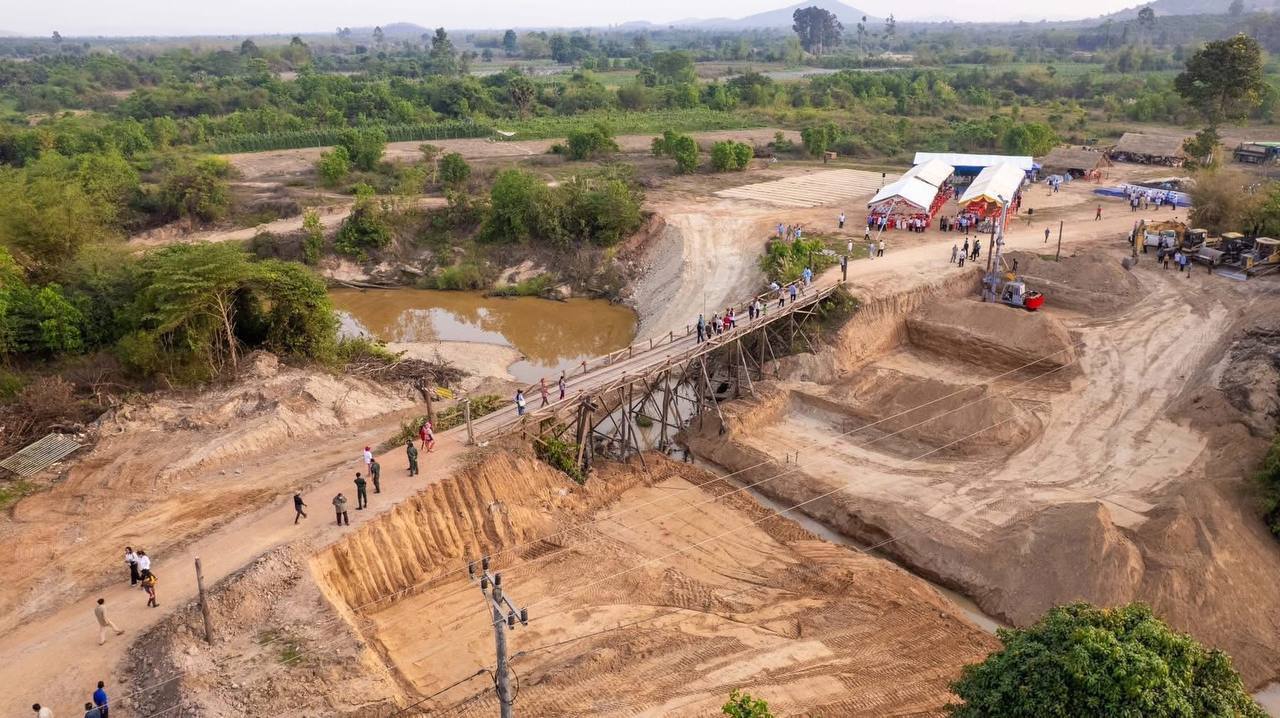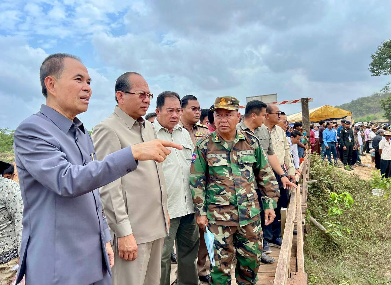 ( កំពត) នាថ្ងៃព្រហស្បតិ៍ ៩រោច ខែផល្គុន ឆ្នាំម្សាញ់ សប្តស័ក ព.ស.២៥៦៩ ត្រូវនឹងថ្ងៃទី១២ ខែមីនា ឆ្នាំ២០២៥ ឯកឧត្តមបណ្ឌិត នួន ដាញ៉ិល រដ្ឋលេខាធិការ តំណាងដ៏ខ្ពង់ខ្ពស់ ឯកឧត្តម ឆាយ ឫទ្ធិសែន រដ្ឋមន្រ្តីក្រសួងអភិវឌ្ឍន៍ជនបទ រួមជាមួយ ឯកឧត្តម ម៉ៅ ធនិន អភិបាល នៃគណៈអភិបាលខេត្តកំពត អញ្ជើញដឹកនាំក្រុមការងារចុះបើកការដ្ឋានស្ថាបនាស្ពានបេតុង ១កន្លែង (ស្ពានដំរីផុង) ប្រវែង ៦០ម៉ែត្រ ទទឹង ៨ម៉ែត្រ ស្ថិតនៅភូមិកំពង់ចិន ឃុំស្ទឹងកែវ ស្រុកទឹកឈូ ខេត្តកំពត អនុវត្តដោយបញ្ជាការដ្ឋានវិស្វកម្ម កងទ័ពជើងគោក។