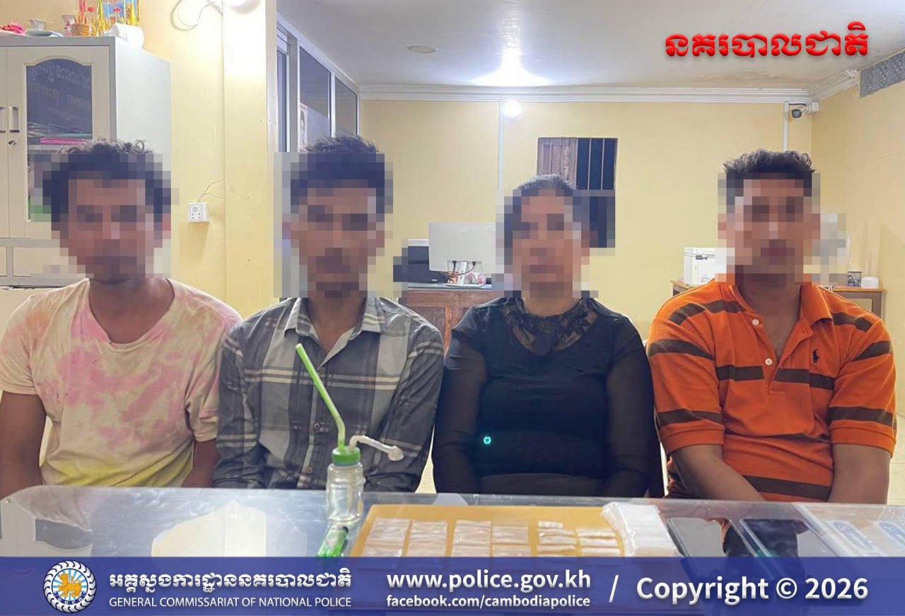 កម្លាំងនគរបាលស្រុកសង្កែ បានបើកប្រតិបត្តិការបង្ក្រាបករណីរក្សាទុកសារធាតុញៀនដោយខុសច្បាប់មួយករណី និងឃាត់ខ្លួនជនសង្ស័យសរុប ៤នាក់ ព្រមទាំងដកហូតថ្នាំញៀនប្រភេទមេតំហ្វេតាមីន (ICE) ចំនួន ២៤ថង់។