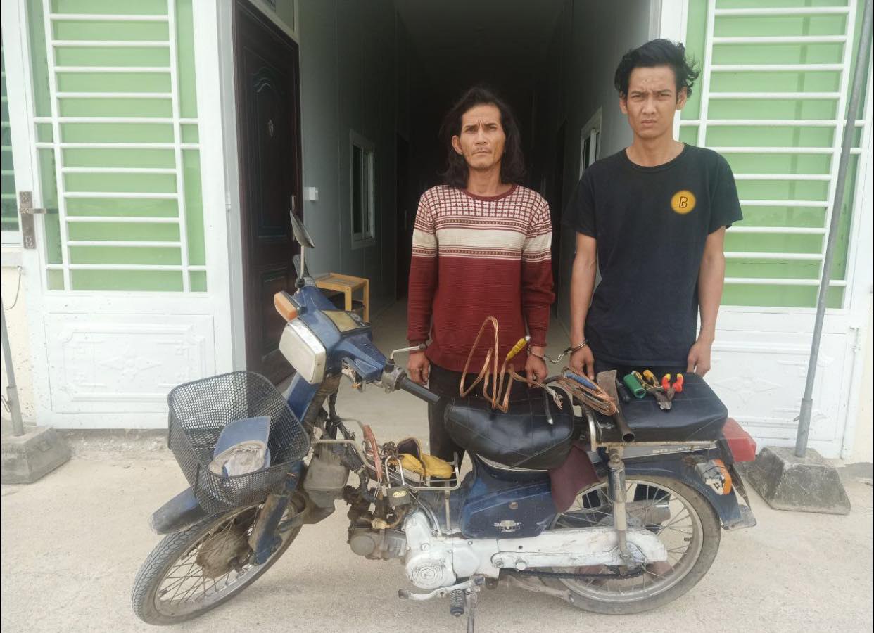 ជនសង្ស័យចំនួន ០២នាក់ ពីបទ លួច (កាត់ខ្សែភ្លើង) នៅចំណុចក្នុងបុរីទុកចោល ផ្លូវបេតុង ភូមិបឹងកំបោរ សង្កាត់ឪឡោក ខណ្ឌកំបូល
