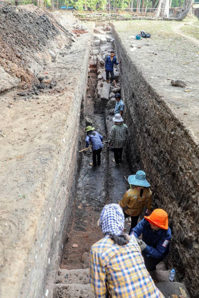 ក្រុមការងារបុរាណវិទ្យា ស្រាវជ្រាវសិក្សាអំពី រចនាសម្ព័ន្ធកសិន្ធុទឹកខាងក្រៅកំពែងព្រះបរមរាជវាំង នៃក្រុងអង្គរធំ