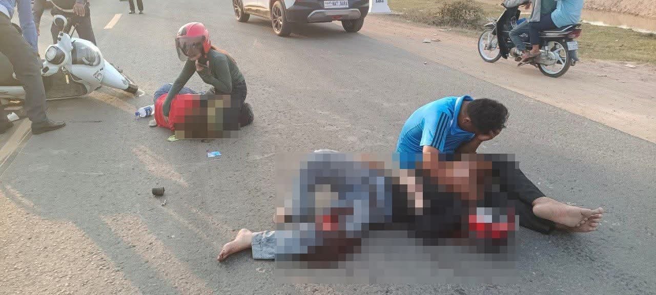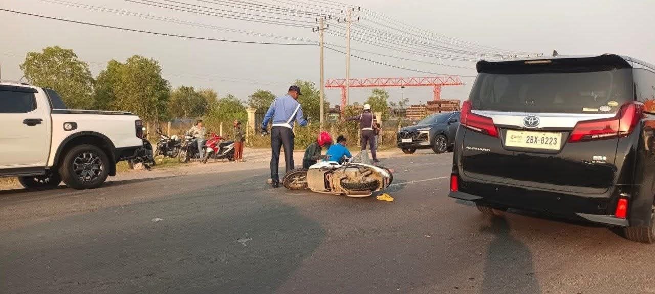 បើកម៉ូតូមិនប្រកាន់ស្ដាំរេចង្កូតចូលរថយន្ត បណ្តាលឱ្យរងរបួសធ្ងន់ កម្មការិនីរោងចក្រ២នាក់់នៅក្រុងស្វាយរៀង