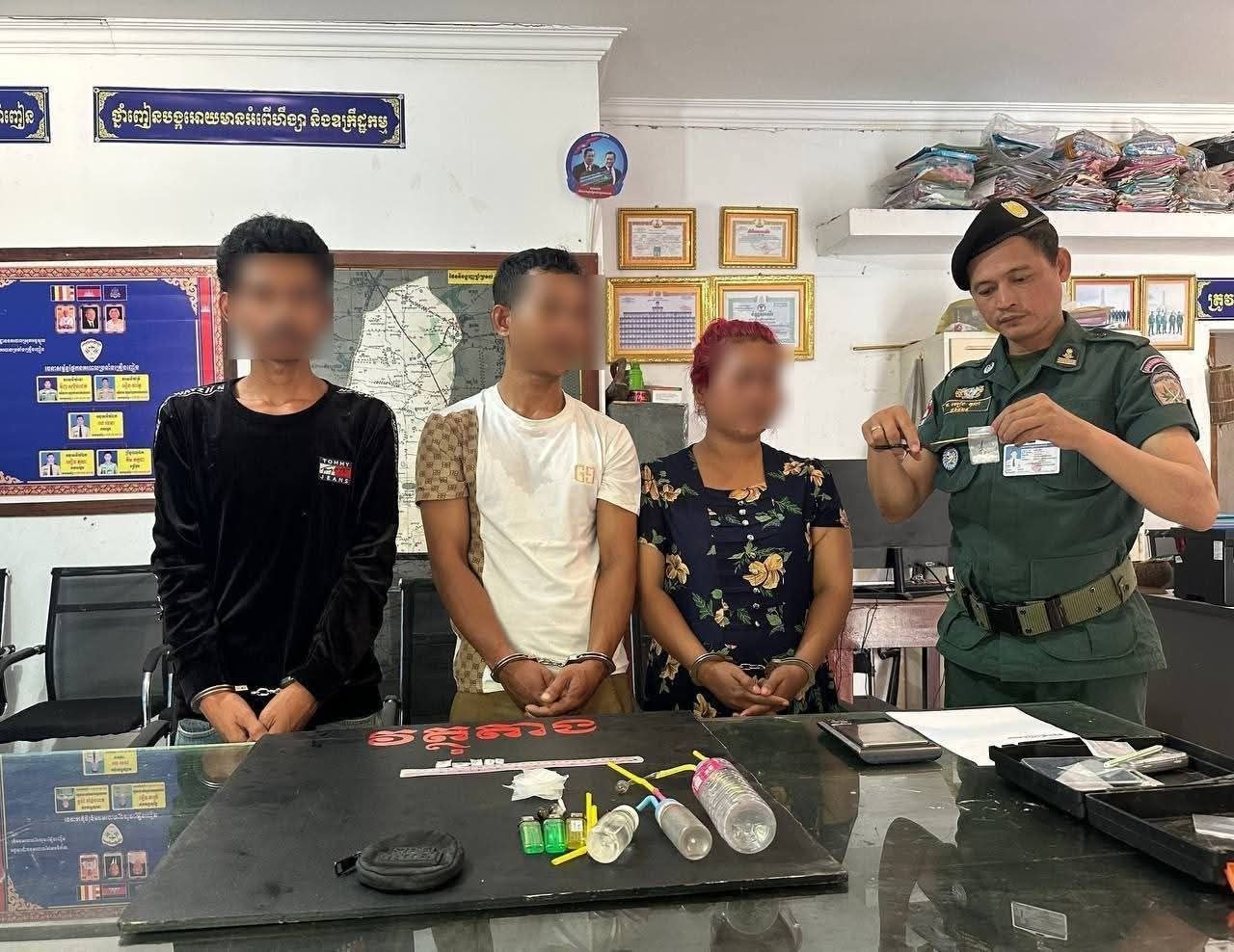 ខេត្តកណ្ដាល៖ ជនសង្ស័យប្រុសស្រី ៣នាក់ ក្នុង ចំណោមបក្ខពួក ៥នាក់ ដែលតែងតែធ្វើសកម្មភាពជួញដូរ និងប្រើប្រាស់គ្រឿងញៀន ត្រូវបានកម្លាំងនគរបាលស្រុកអង្គស្នួលបើកប្រតិបត្តិការបង្ក្រាប និងឃាត់ខ្លួនបានជាបន្តបន្ទាប់ កាលពី ថ្ងៃទី២០ មីនា ២០២៦ ស្ថិតក្នុងភូមិព្រៃទំពូង និងភូមិអង្គស្នួលទី២ ឃុំពើក ស្រុកអង្គស្នួល ខេត្តកណ្តាល។
