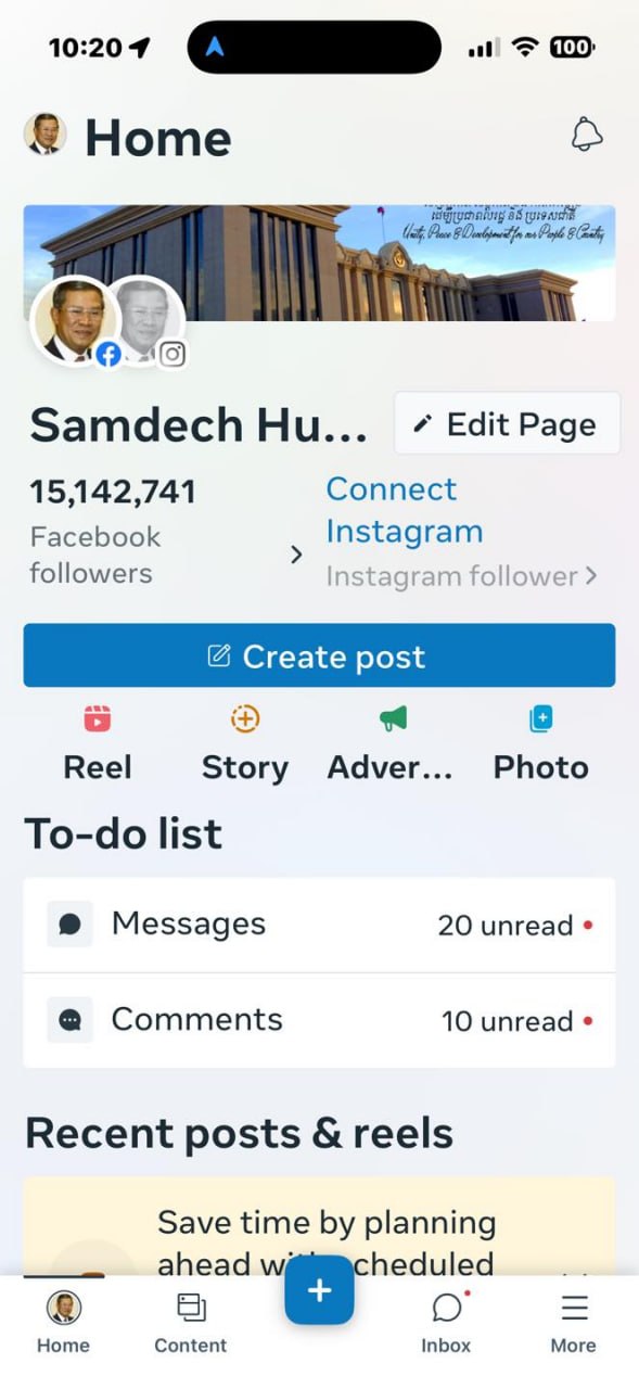(ភ្នំពេញ)៖ សម្តេចតេជោ ហ៊ុន សែន នារាត្រីថ្ងៃទី២០ ខែមីនា ឆ្នាំ២០២៦នេះ បានជូនដំណឹងថា មានក្រុមជនក្បត់ជាតិមួយចំនួនបានបង្កើតគណនី និងផេកហ្វេសបុកក្លែងក្លាយ ដោយយករូបថត និងឈ្មោះរបស់សម្តេចទៅប្រើប្រាស់ ដើម្បីបង្ហោះព័ត៌មានមិនពិត និងបង្កការភាន់ច្រឡំដល់សាធារណជន។