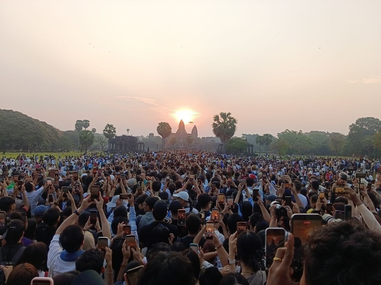 ភ្ញៀវទេសចរជាតិ និងអន្តរជាតិយ៉ាងច្រើនកុះករ ទៅទស្សនា និងផ្តិចយករូបភាព ព្រឹត្តិការណ៍ដ៏អស្ចារ្យ “ថ្ងៃរះចំកំពូលប្រាង្គកណ្តាលនៃប្រាសាទអង្គរវត្ត” ឬសមរាត្រី (Equinox) នាព្រឹកថ្ងៃទី២១ ខែមីនា ឆ្នាំ២០២៦។