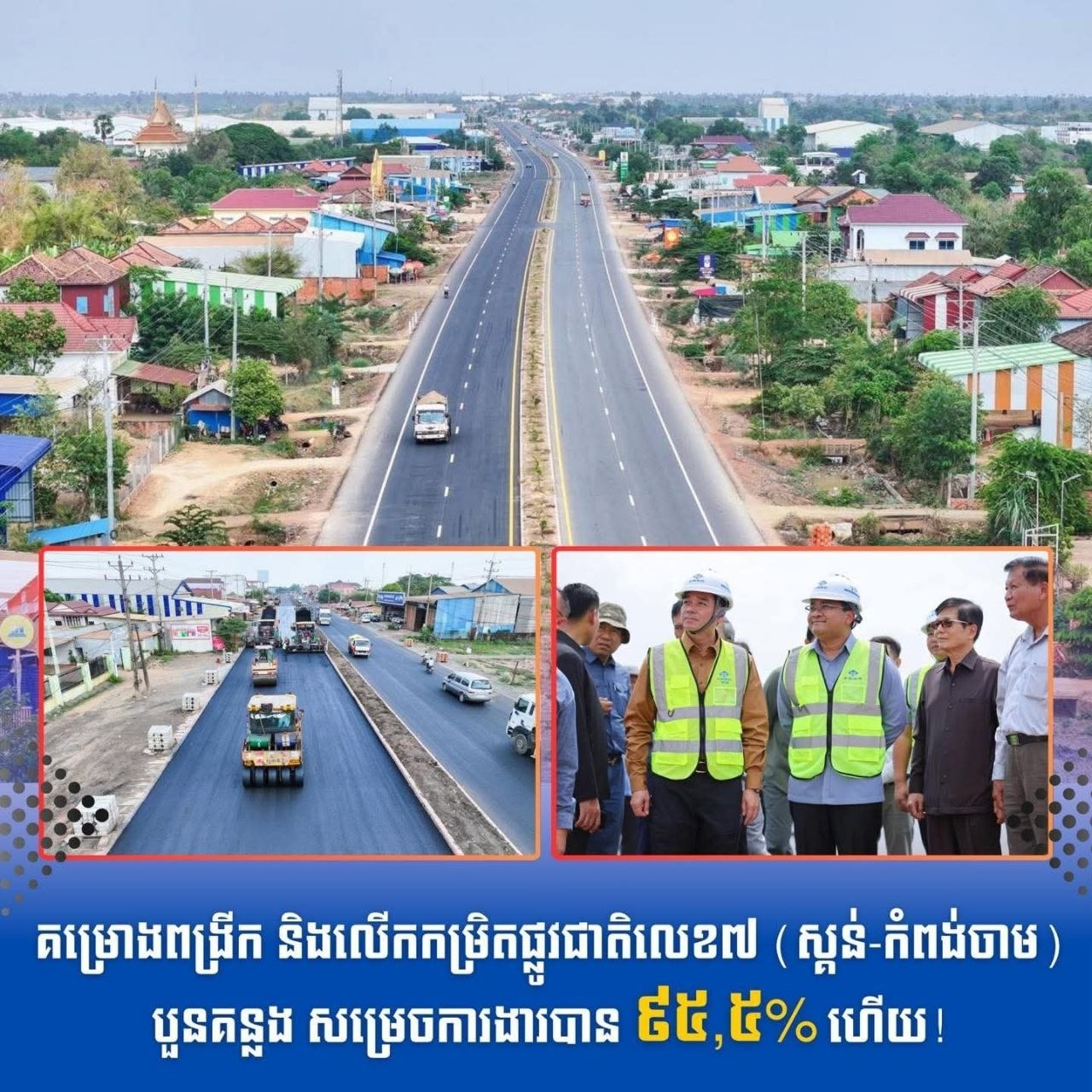 គម្រោងពង្រីក និងលើកកម្រិតផ្លូវជាតិលេខ៧ (ស្គន់-កំពង់ចាម) បួនគន្លង សម្រេចការងារបាន ៩៥,៥% ហើយ