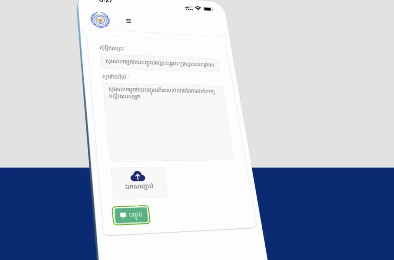 • ចំណែកត្រង់ប្រអប់ «សូមរ៉ាយរ៉ាប់» លោកអ្នកត្រូវវាយបញ្ចូលបរិយាយពីសកម្មភាពមិនប្រក្រតី ឬការប្រព្រឹត្តខុសវិជ្ជាជីវៈនៃបុគ្គលនោះ បន្ទាប់មកសូមចុចប៊ូតុងពាក្យថា «បញ្ជូន»។ បន្ទាប់ពីបញ្ជូន លោកអ្នកនឹងទទួលបានលេខកូដបណ្ដឹង ដែលបញ្ជាក់ថាលោកអ្នកបានដាក់បណ្ដឹងដោយជោគជ័យ។