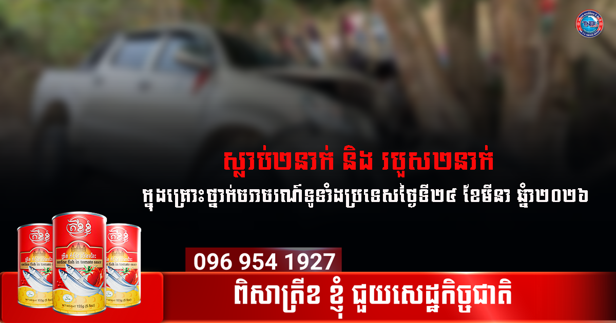 ស្លាប់២នាក់ និងរបួស២នាក់ ក្នុងគ្រោះថ្នាក់ចរាចរណ៍ទូទាំងប្រទេសថ្ងៃទី២៤ ខែមីនា ឆ្នំា២០២៦