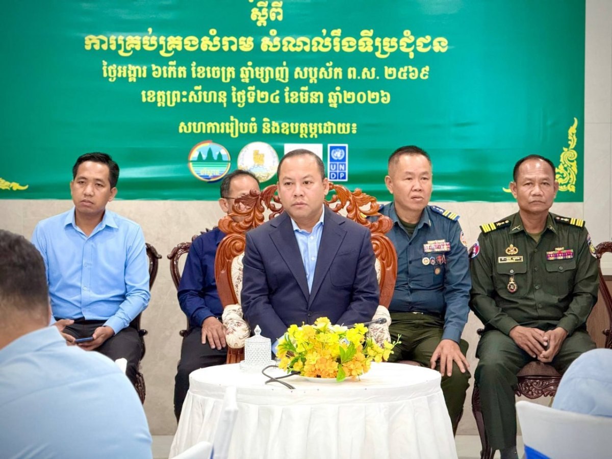 ថ្ងៃទី២៤ ខែមីនា ឆ្នាំ២០២៦ លោក ឡុង ឌីម៉ង់ អភិបាលរងខេត្តព្រះសីហនុ បានអញ្ជើញជាអធិបតីក្នុងពិធីបើកវគ្គបណ្តុះបណ្តាល ស្តីពី ការគ្រប់គ្រងសំរាម សំណល់រឹង ទីប្រជុំជន ដោយមានការចូលរួមពីតំណាងមន្ទីរ-អង្គភាពពាក់ព័ន្ធ នៅសណ្ឋាគារ Seascape Palace ខេត្តព្រះសីហនុ។