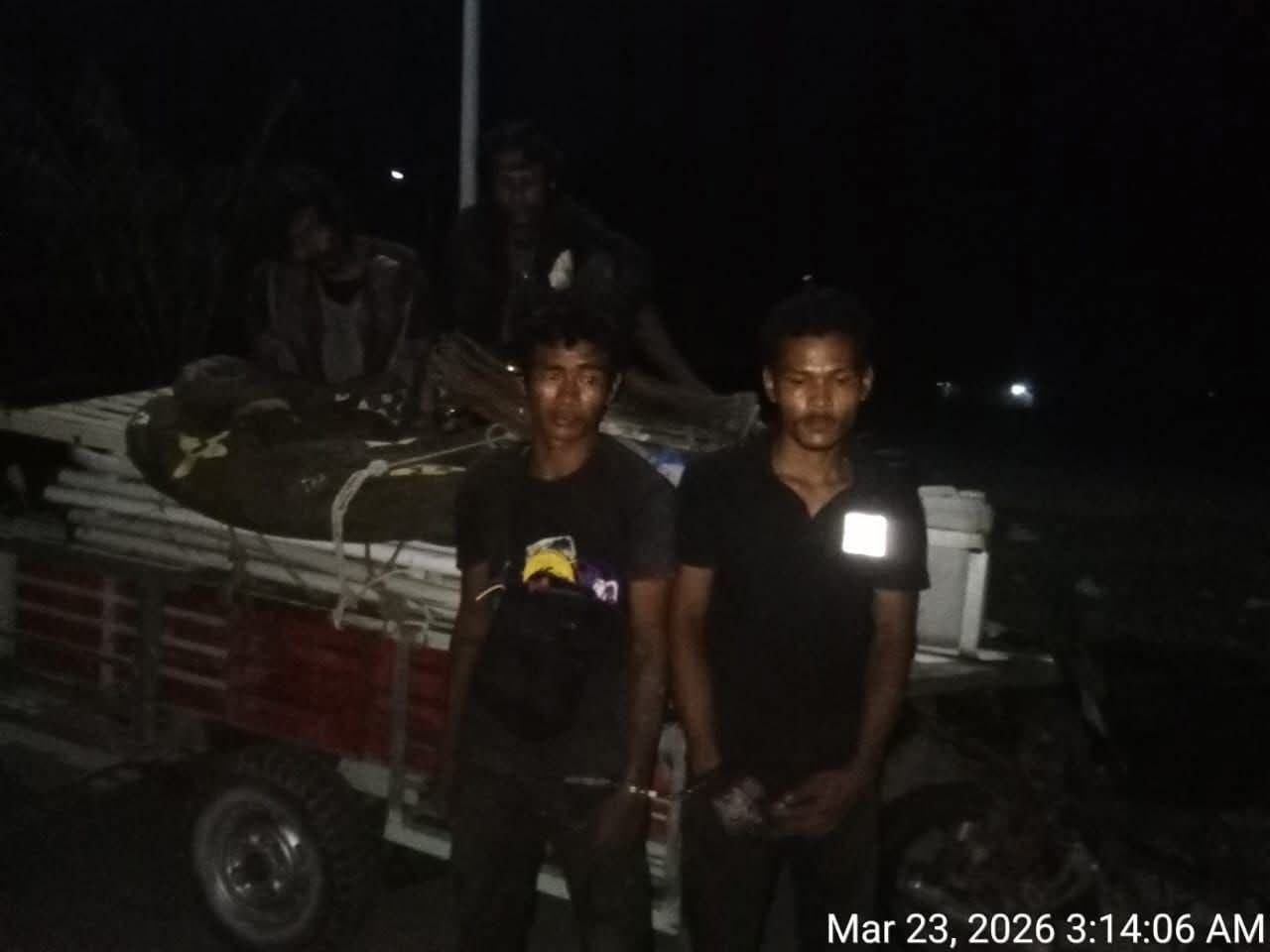 ក្រោយពី ទទួលបាន ព័ត៌មាន នេះ រួចមក កម្លាំងសមត្ថកិច្ចយើង បានចុះទៅដល់ ទីតាំងកន្លែងកើតហេតុធ្វើការស្រាវជ្រាវ និងបានធ្វើ ការនាំខ្លួន ជនសង្ស័យ ចំនួន០៤នាក់ ភេទប្រុស