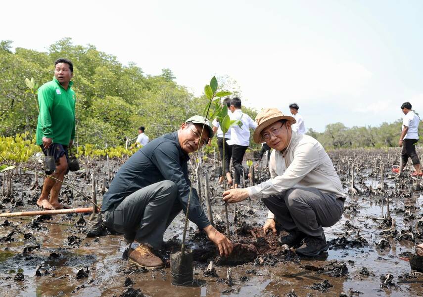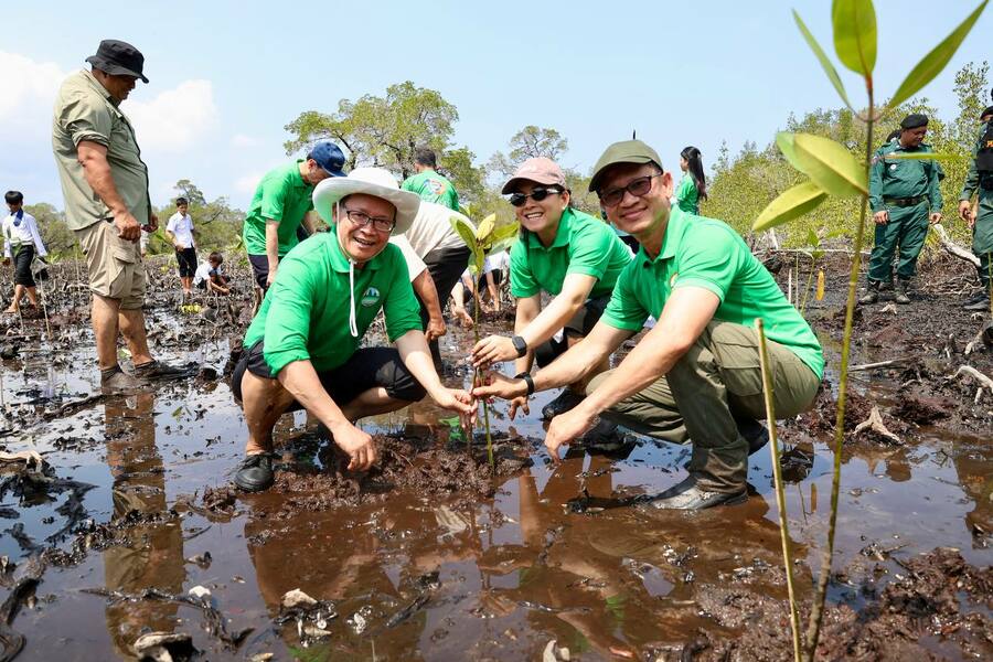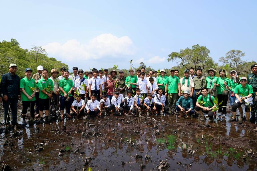 បន្ទាប់មក ឯកឧត្តមរដ្ឋមន្រ្តី អមដំណើរ លោកជំទាវ ឈីវ រ៉ា អភិបាលនៃគណៈអភិបាលខេត្តកោះកុង ប្រតិភូថ្នាក់ដឹកនាំមន្រ្តីរាជការ ក្រសួងបរិស្ថាន មន្ទីរ អង្គភាពជុំវិញខេត្ត អង្គការដៃគូ វិស័យឯកជន កងកម្លាំងប្រដាប់អាវុធ លោកគ្រូអ្នកគ្រូ សិស្សានុសិស្ស និងប្រជាពលរដ្ឋ នៃសហគមន៍តំបន់ការពារធម្មជាតិកោះស្រឡៅ បានចូលរួមដាំស្តារព្រៃកោងកាងរបស់សហគមន៍ ចំនួន៣០០០ដើម។