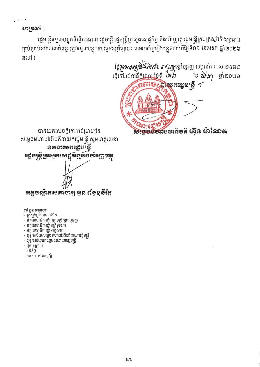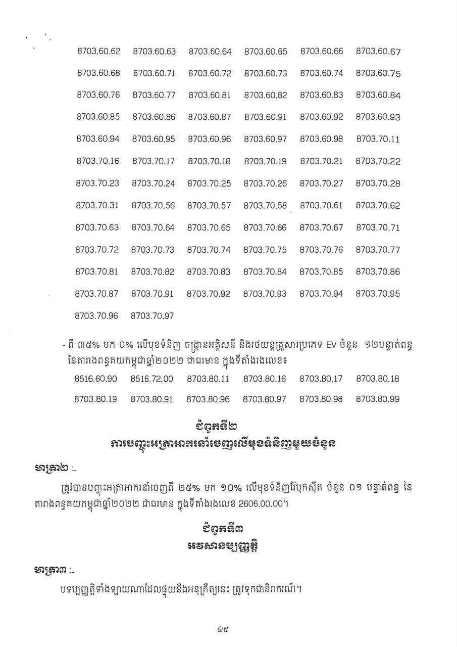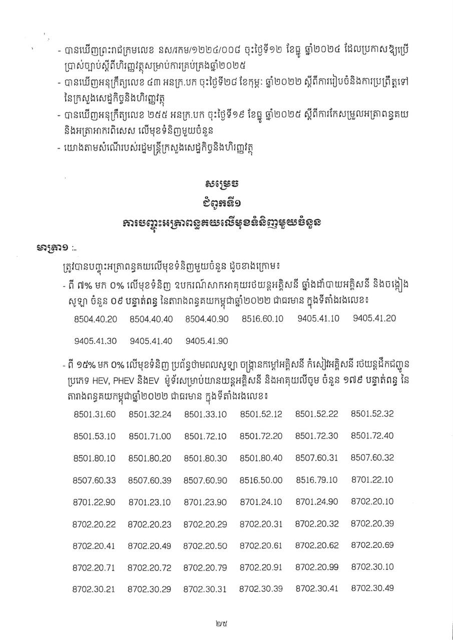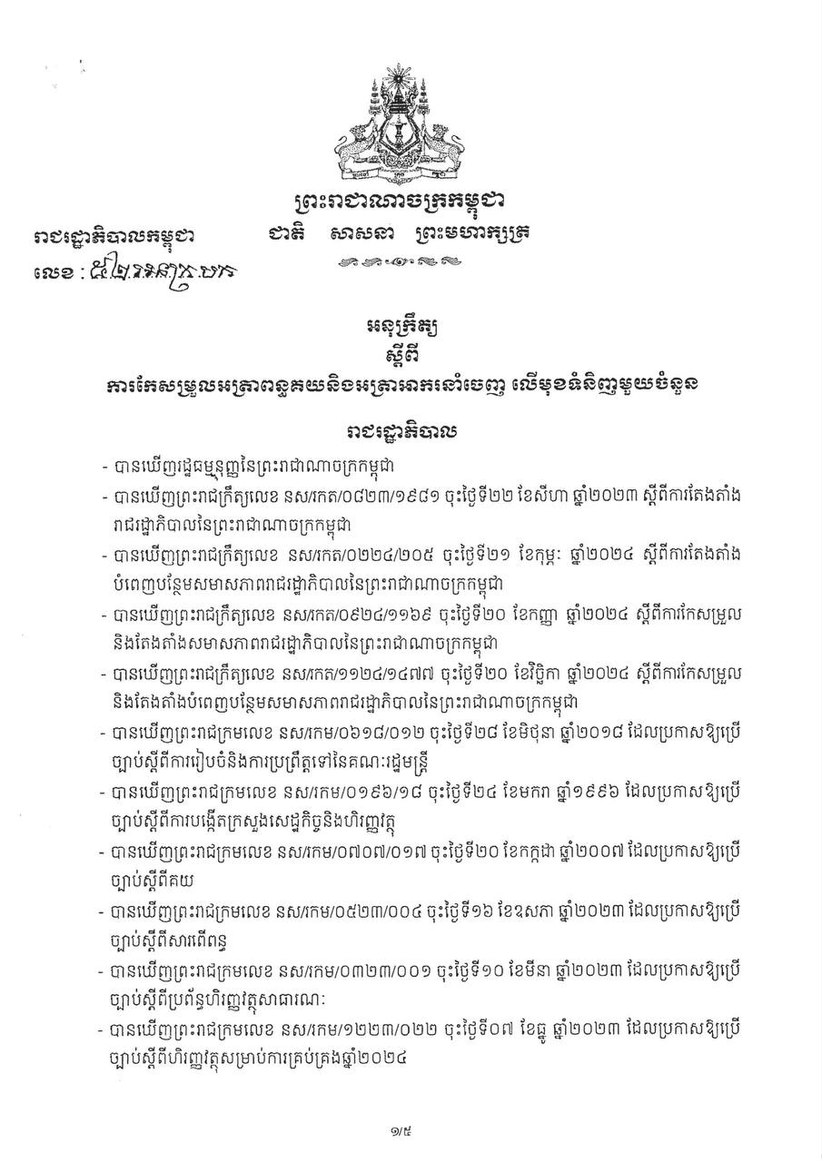 អនុក្រឹត្យស្តីពីការកែសម្រួលអត្រាពន្ធគយនិងអត្រាអាករនាំចេញ លើមុខទំនិញមួយចំនួន