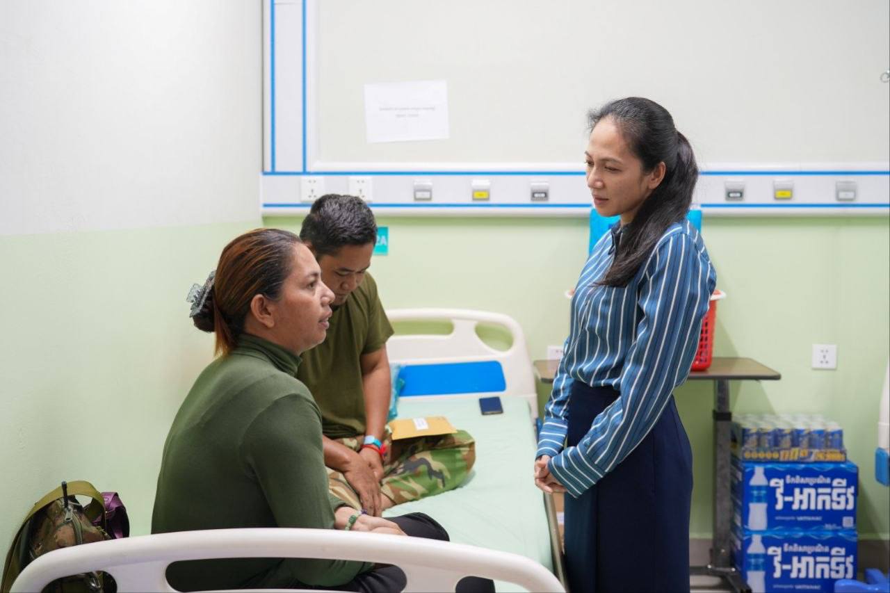 លោកជំទាវបណ្ឌិត ពេជ ចន្ទមុន្នី ហ៊ុនម៉ាណែត អញ្ជើញសួរសុខទុក្ខវីរៈកងទ័ពដែលកំពុងសម្រាកព្យាបាលនៅមន្ទីរពេទ្យមិត្តភាពខ្មែរ-សូវៀត ក្រោយបានរងរបួស អំឡុងពេលបំពេញការងារ កាលពីថ្ងៃទី២៦ មីនា ២០២៦