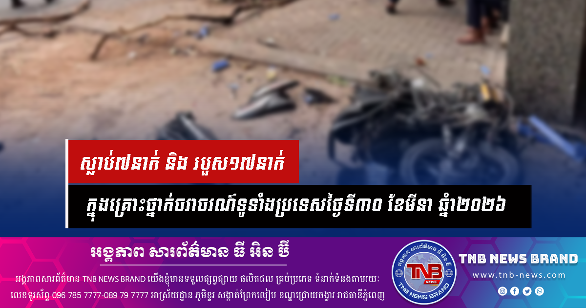 ស្លាប់៧នាក់ និងរបួស១៧នាក់ ក្នុងគ្រោះថ្នាក់ចរាចរណ៍ទូទាំងប្រទេសថ្ងៃទី៣០ ខែមីនា ឆ្នំា២០២៦